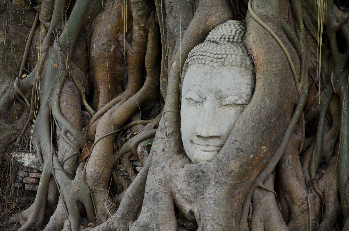 Célèbre pour la tête de Bouddha enveloppé dans les racines d'un arbre, le temple de Wat Mahathat est l'un des plus anciens de Ayuthaya, construit entre 1374 et 1390 par Borom Rachaphirat I. Selon la tradition thaïlandaise, la tête enveloppée dans les racines d'un arbre serait porteuse de chance.