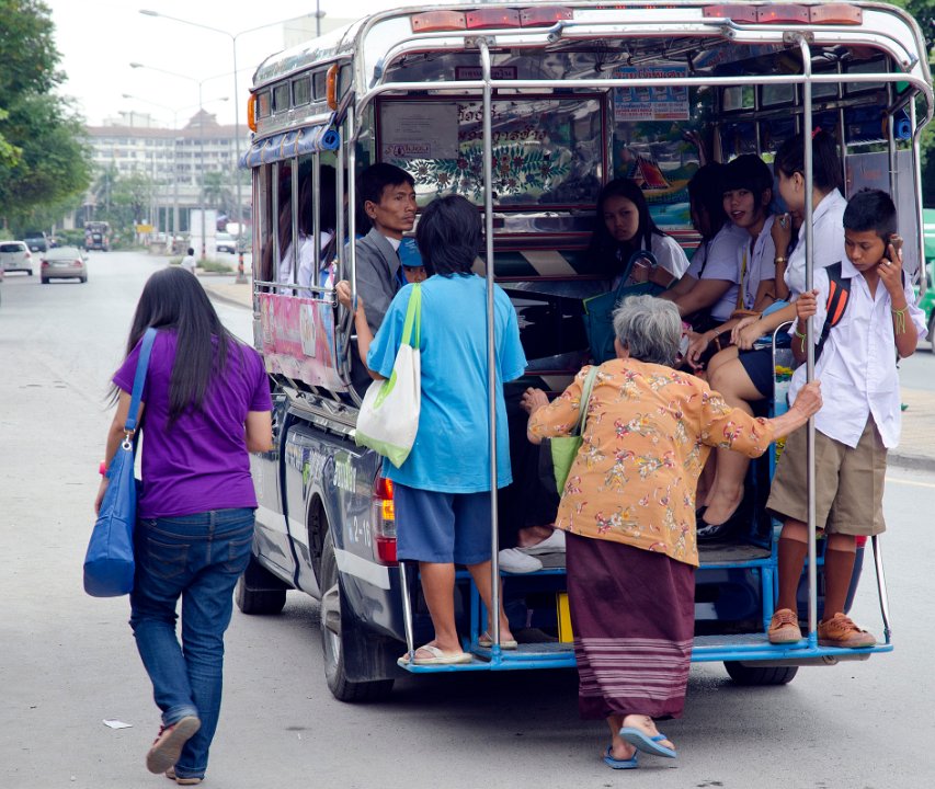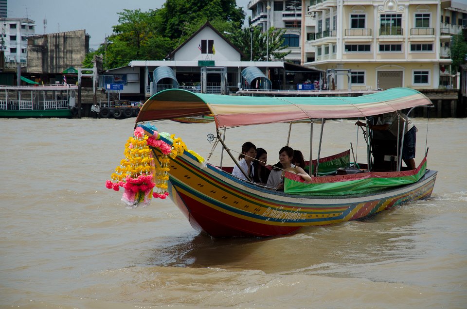 DSC 1827  Le train permet de sortir de la ville. La gare de Hua  Lamphong DSC 1910  Le bus est le moyen de transport en commun le plus développé DSC 1303  Une pirogue à touristes sur la Chao Phraya DSC 1383  Le bateau est aussi utilisé sur la Chao Phraya