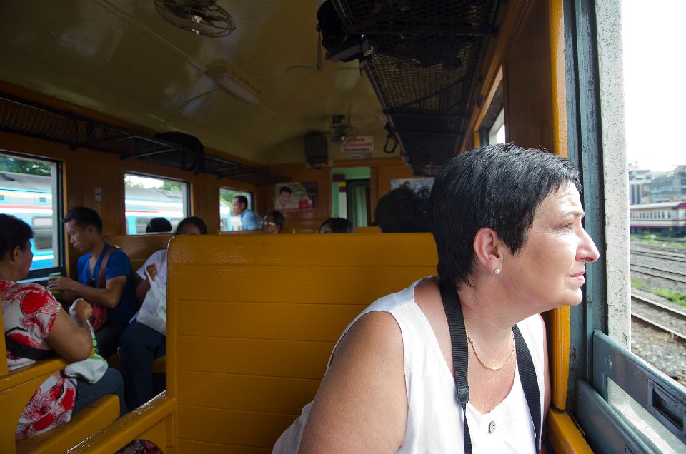 DSC 1145  Les canaux disposent d'un transport par bateau, ici le canal de San Sap qui relie la banlieue est au centre ville DSC 1451  Un embarcadère en rive droite de la Chao Phraya DSC 1461  Ce n'est pas une antiquité, mais un train bien actuel DSC 1649  mais le confort est parfois sommaire