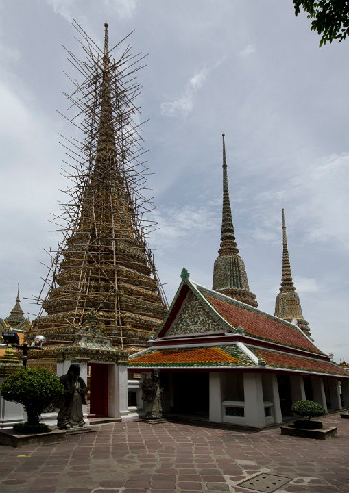 Une Phra Maha Chedi en cours de restauration (échaffaudage en banbous)