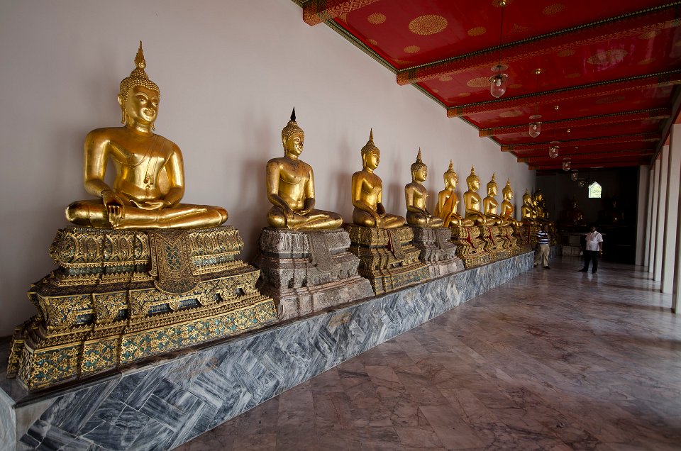 Au fond, la galerie des bouddhas