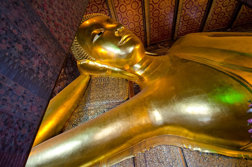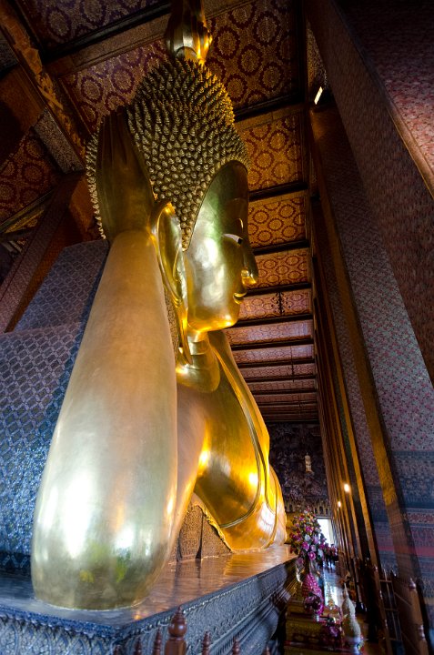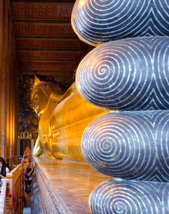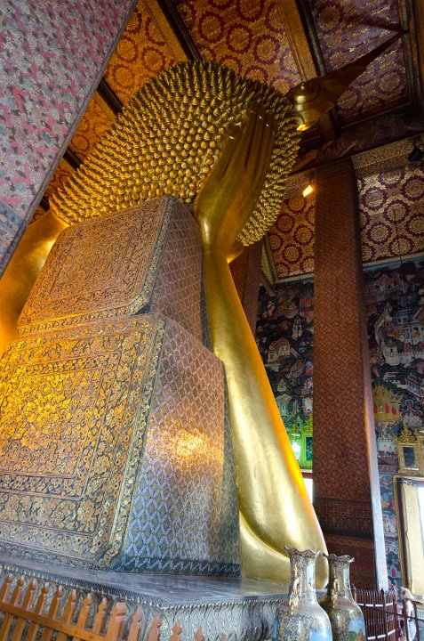 Wat Pho est le plus vaste temple de Thailande. Il abrite un Bouddha couché de 46m de long. Il héberge une célèbre école de massage.