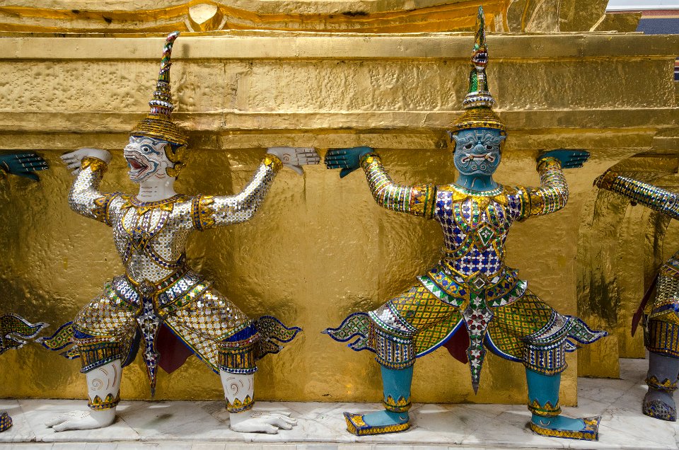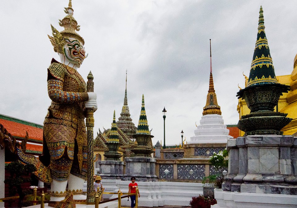 DSC 1166  Tout au fond en haud, le Bouddha d'émeraude (75cm de haut) DSC 1175  Géant du Ramakien DSC 1183  Le Phra Mondop (Bibliothèque) DSC 1189  Prasat Phra Thep Bidon (panthéon royal)
