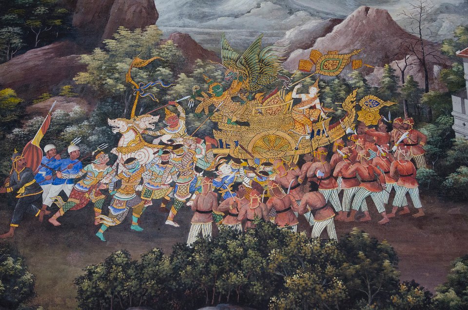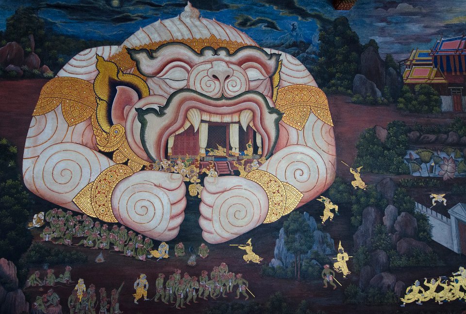 DSC 1194  Panneau de la galerie du Ramakien DSC 1197  Prangs devant la galerie du Ramakien DSC 1200  Vue d'ensemble DSC 1202  Statues