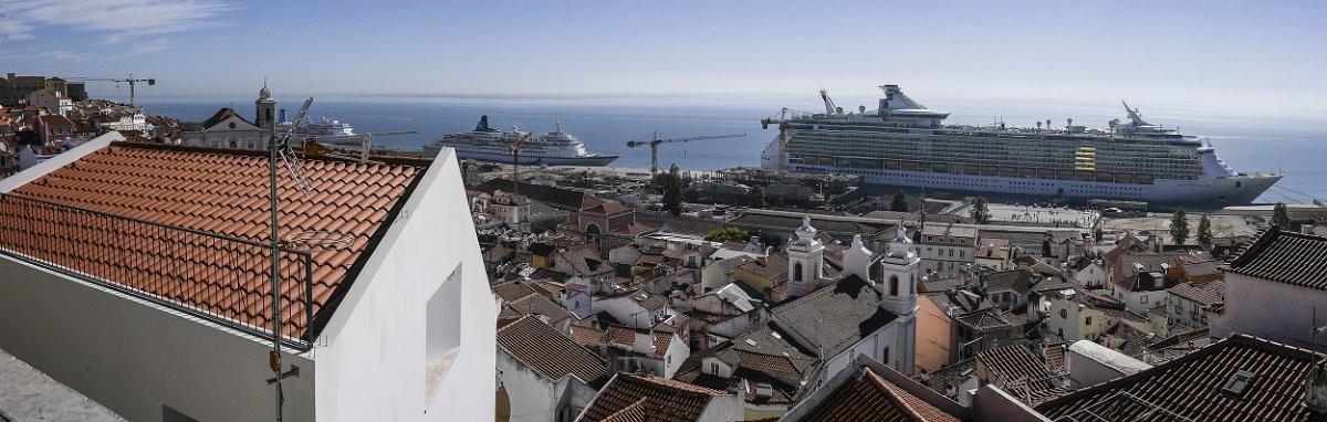 2 Dans le port de Lisbonne : plusieurs bateaux de croisière dont l'Independance of the Seas |