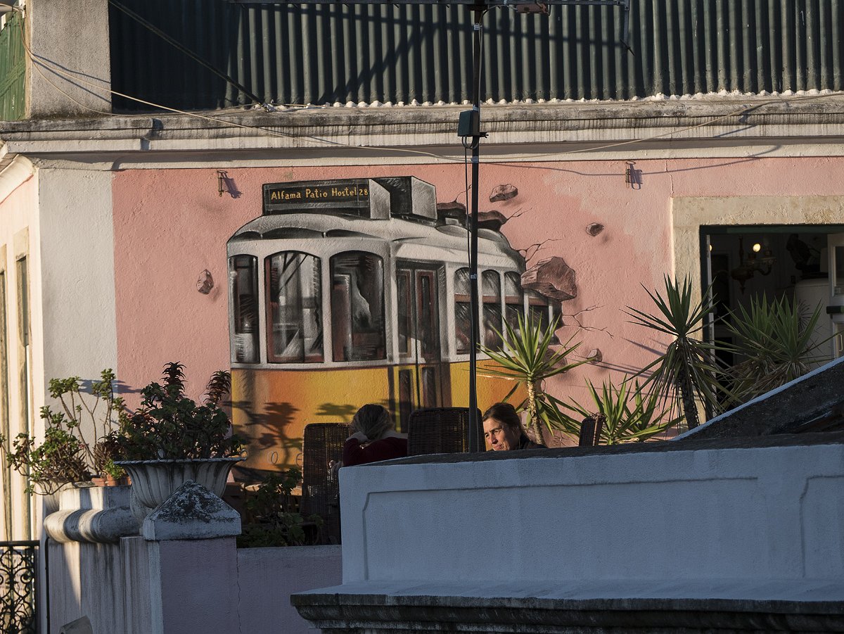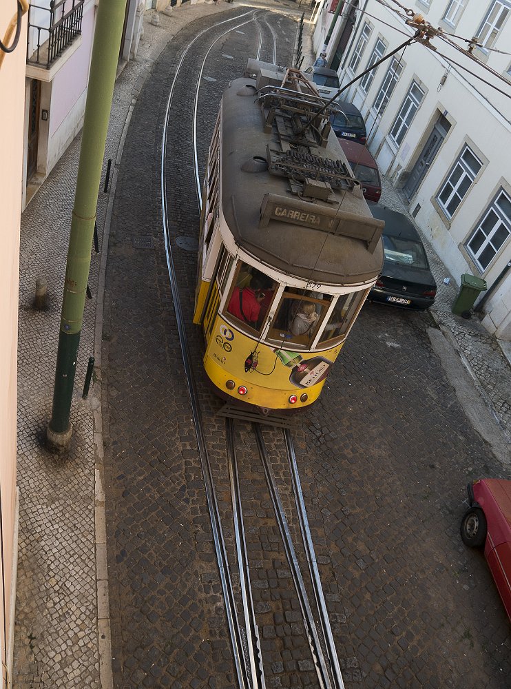5 Un tram de la célèbre ligne 28 dans une rue de l'Alfama vu depuis notre appartement |