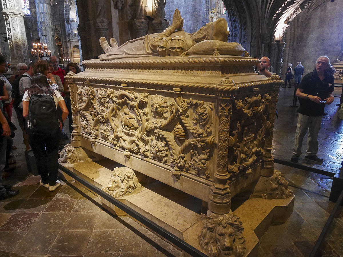 La nef principale et le coeur Les colonnes qui supportent les voutes Tombeau de Luis Vaz De Camoès (poète portugais) dans une chapelle Tombeau de Camoès