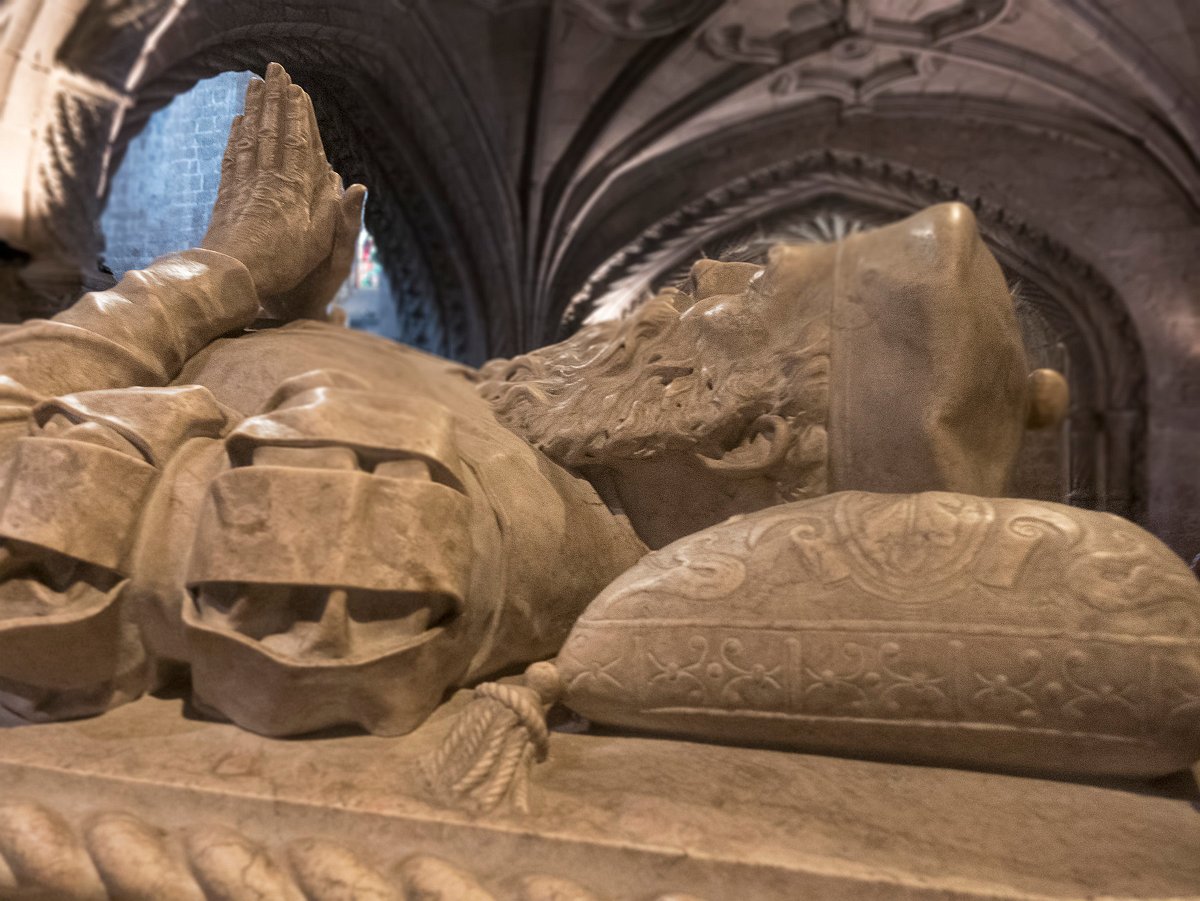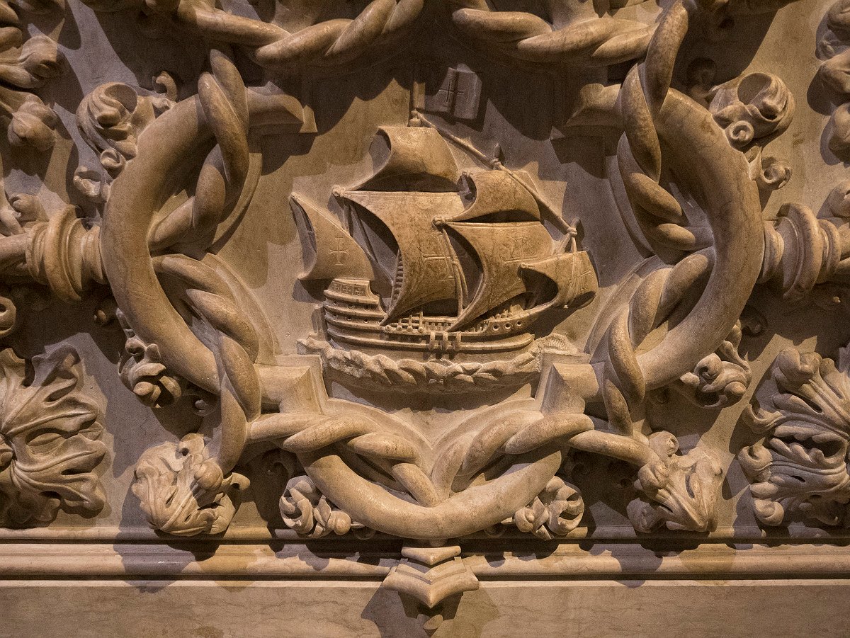 Le tombeau de Vasco de Gama Détail d'une caravelle Statue de Vasco de Gama Le monastère vu de nuit et ses illuminations