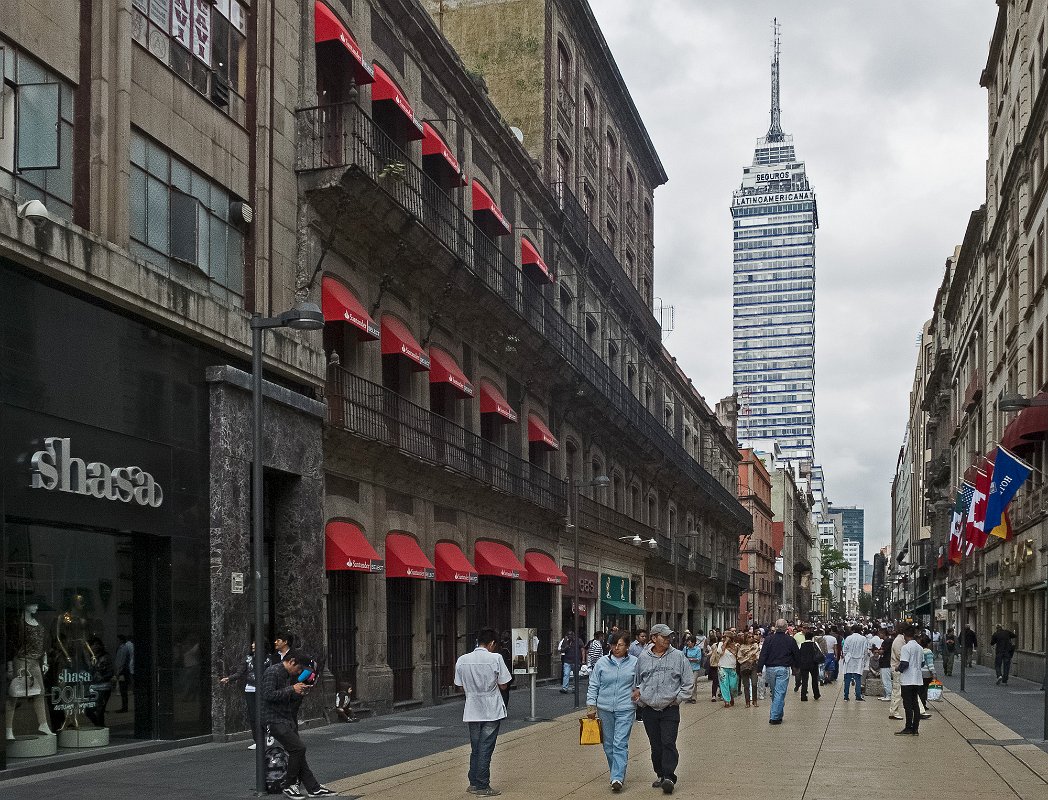 Rue Francisco I.Madero. Au fond la tour d'Amérique Latinr