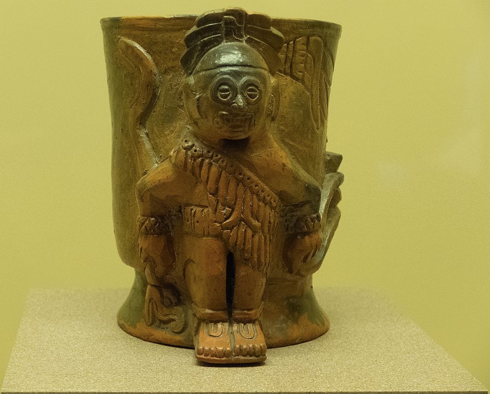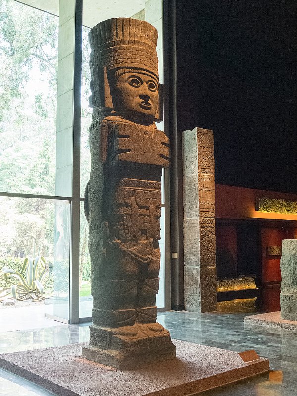 AtlanteTula900 - 1250 ADOnly 80 cm de haut et conservant ses pigments d'origine, cet atlante était probablement utilisé pour supporter un autel. Il représente un guerrier et porte une cuirasse et un collier de même conception que ceux de droite.