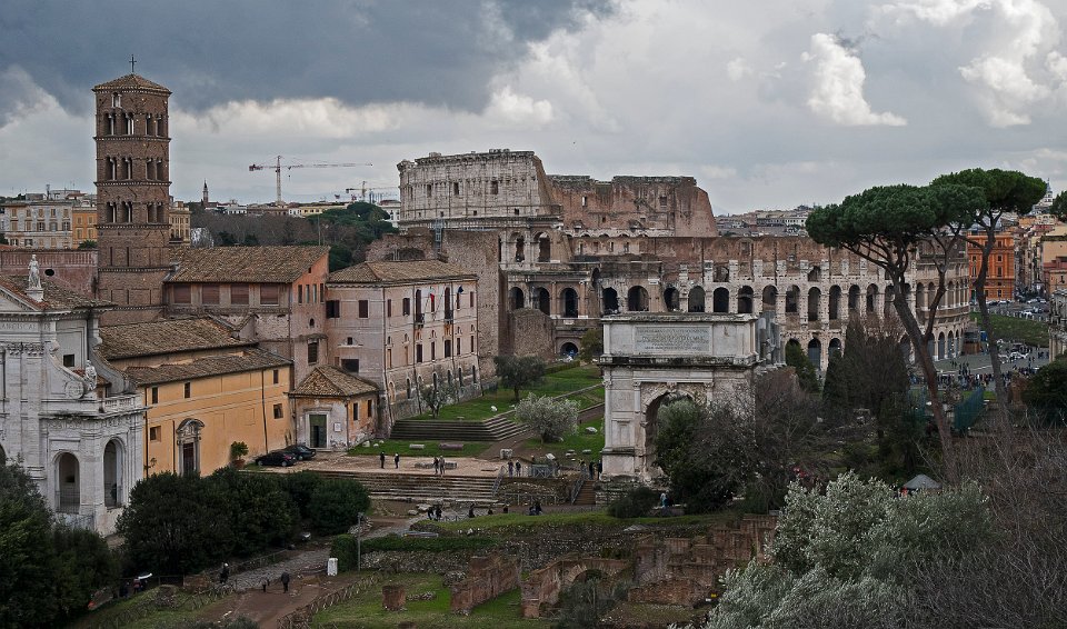 9Le colysée vue du forum romain. Au premier plan l'arc de Titus