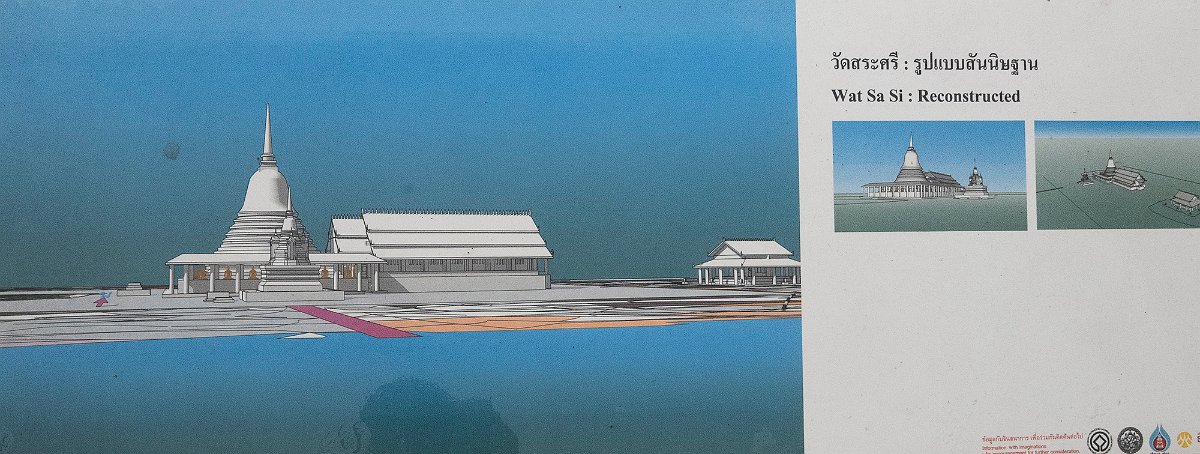Wat Sa Si possède l'un des plus beaux endroits de Sukhothai .Ce magnifique temple trône au milieu d’un petit étang artificiel. On y accède grâce à un petit pont. On peut y observer des pierres en forme de pétales de lotus qui délimitent le hall d’ordination ainsi qu’un chedi d’inspiration sri-lankaise. On peut également y admirer un immense bouddha ainsi qu’un plus petit bouddha noir en marche.