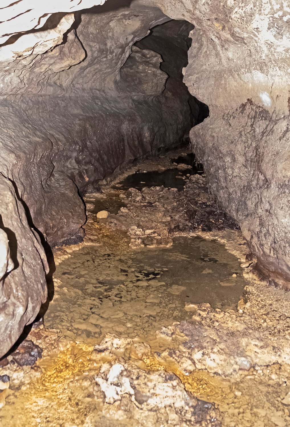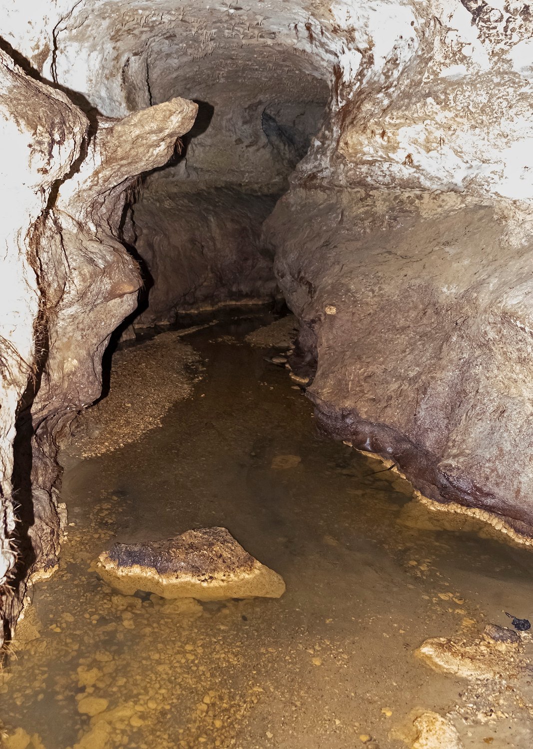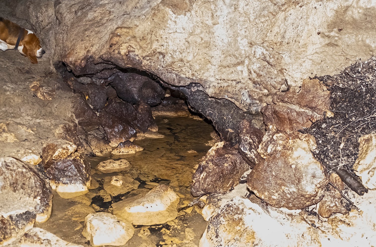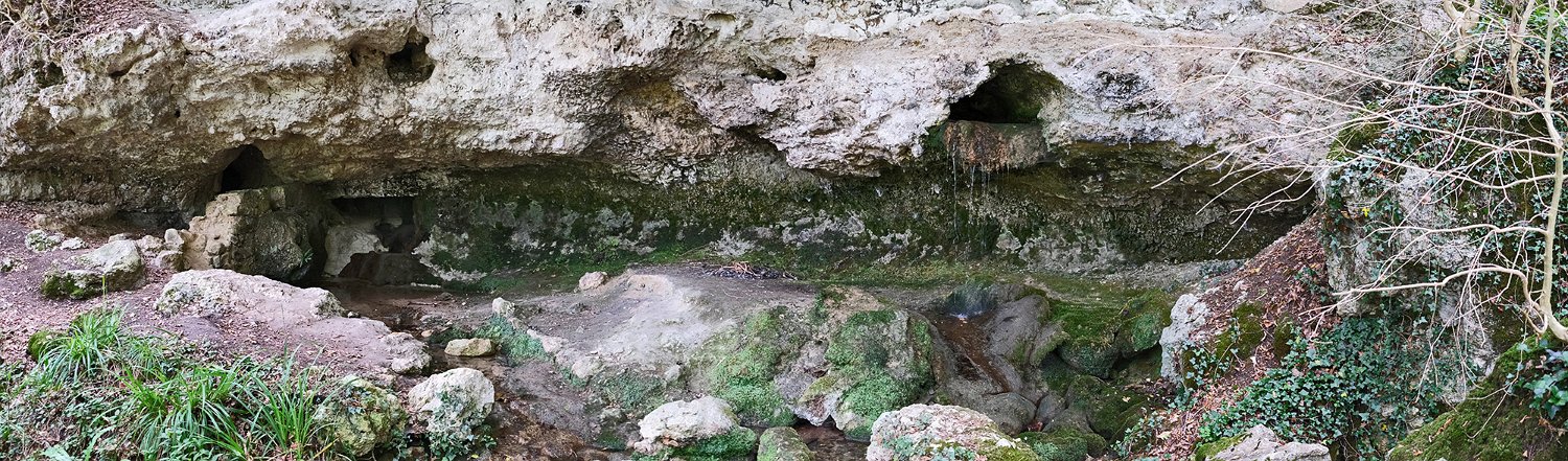 La grotte de Fontanguillère est située sur la commune de Rouffignac de Sigoulès en Dordogne. Cette grotte creusée par le ruisseau des Giroux a été occupée par l'homme depuis l'âge du bronze. Elle a été notamment le lieu de cultes funéraires au cours desquels avaient lieu des inhumations sur des claies suspendues au dessus du ruisseau souterrain, d'où son qualificatif de grotte sépulcrate. De nombreux ossements humains y ont été découverts sur les 600 premiers mètres lors des fouilles réalisées entre la fin du XIXe siècle et 1950. La grotte est facile d'accès en période d'étiage et il est possible d'y parcourir sans grande difficulté plus de 2 km. Par contre, elle est très peu concrétionnée et sa visite se révèle, au-delà de son intérêt géologique, quelque peu monotone. Remarque : Les photos d'intérieur de la grotte ont été prises à 12800ISO et sont donc de qualité moyenne.