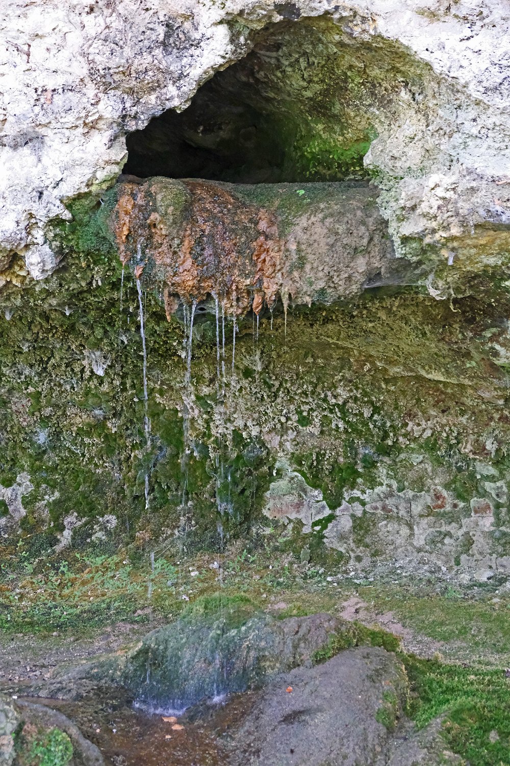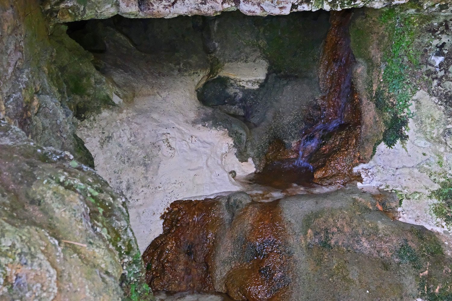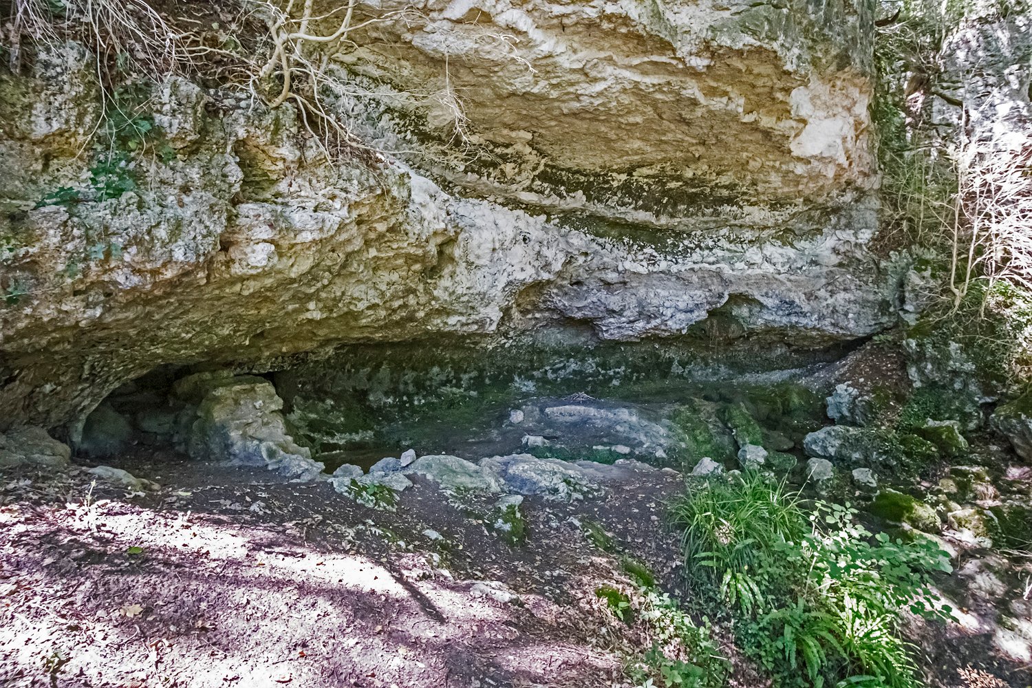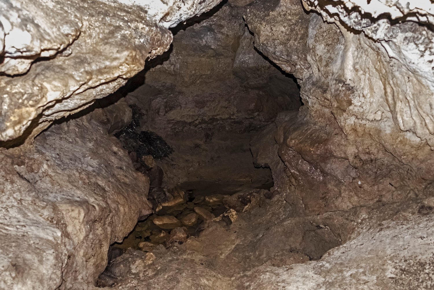 La grotte de Fontanguillère est située sur la commune de Rouffignac de Sigoulès en Dordogne. Cette grotte creusée par le ruisseau des Giroux a été occupée par l'homme depuis l'âge du bronze. Elle a été notamment le lieu de cultes funéraires au cours desquels avaient lieu des inhumations sur des claies suspendues au dessus du ruisseau souterrain, d'où son qualificatif de grotte sépulcrate. De nombreux ossements humains y ont été découverts sur les 600 premiers mètres lors des fouilles réalisées entre la fin du XIXe siècle et 1950. La grotte est facile d'accès en période d'étiage et il est possible d'y parcourir sans grande difficulté plus de 2 km. Par contre, elle est très peu concrétionnée et sa visite se révèle, au-delà de son intérêt géologique, quelque peu monotone. Remarque : Les photos d'intérieur de la grotte ont été prises à 12800ISO et sont donc de qualité moyenne.