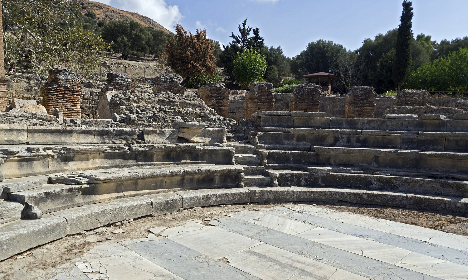 Gortyne a été occupée dès le néolithique. Le site se développe ensuite à l'époque minoenne. Sous l'époque romaine, Gortyne devient une capitale de région. Aujourd'hui la plupart des ruines visibles sur le site sont romaines. Seule une petite partie du site est ouverte au public, le reste des ruines étant dispersées dans les oliveraies situées de l'autre côté de la route par rapport au site ouvert au public
