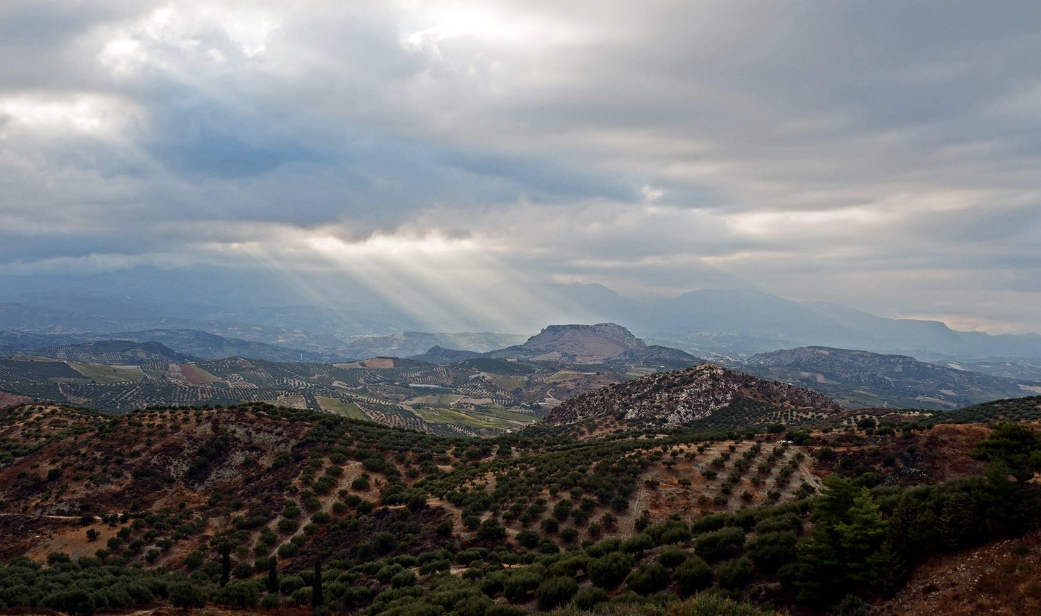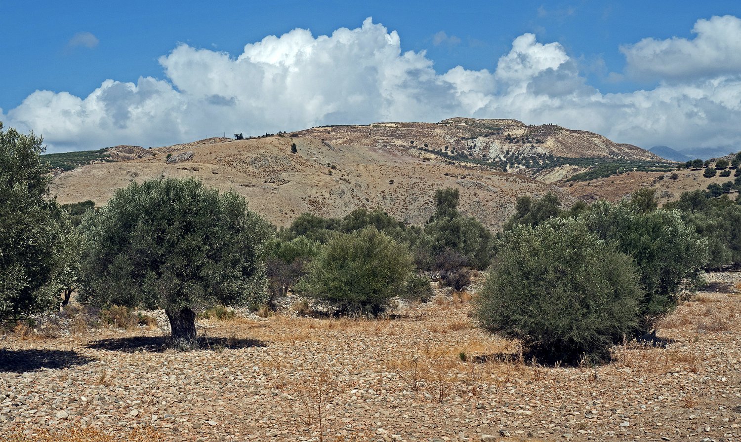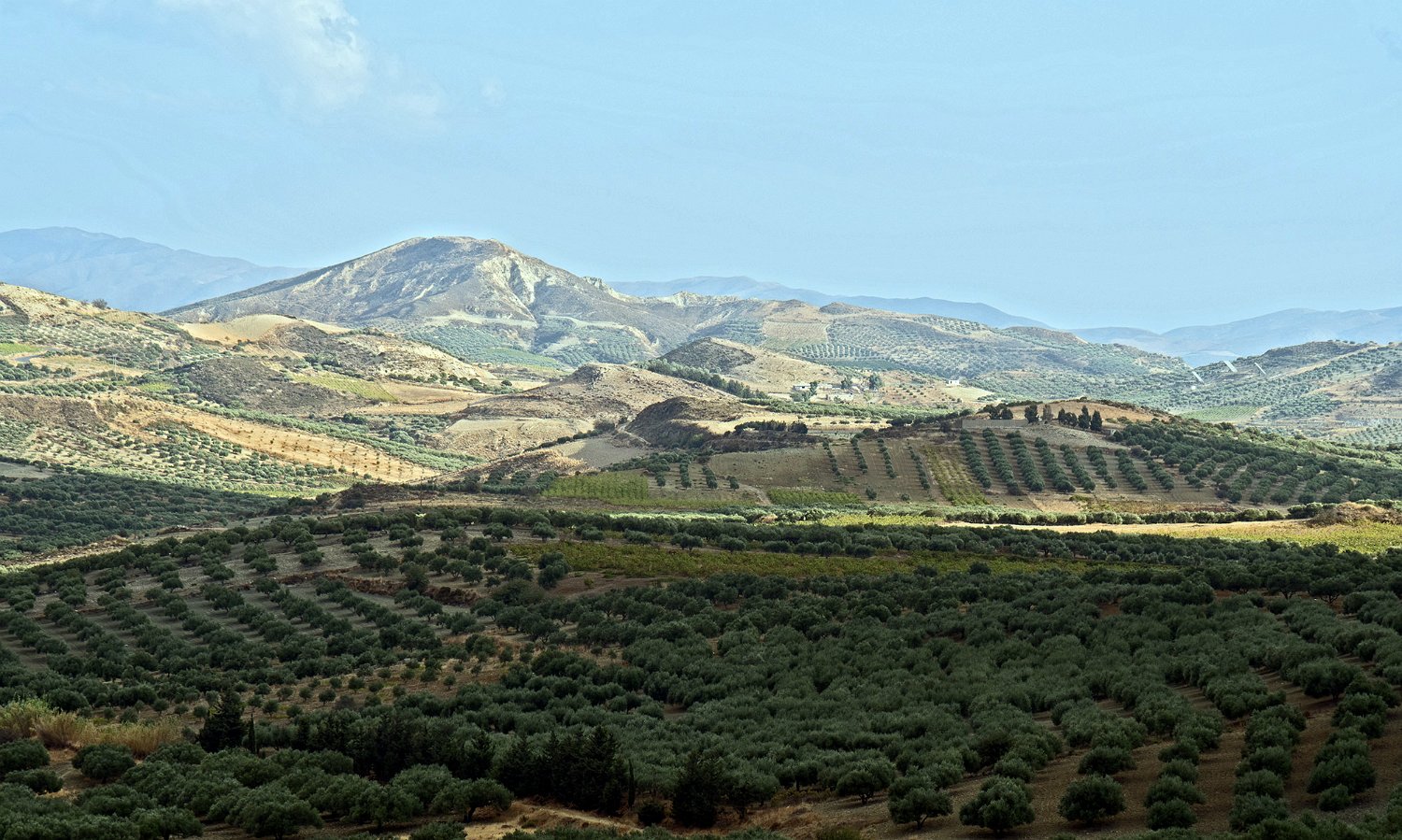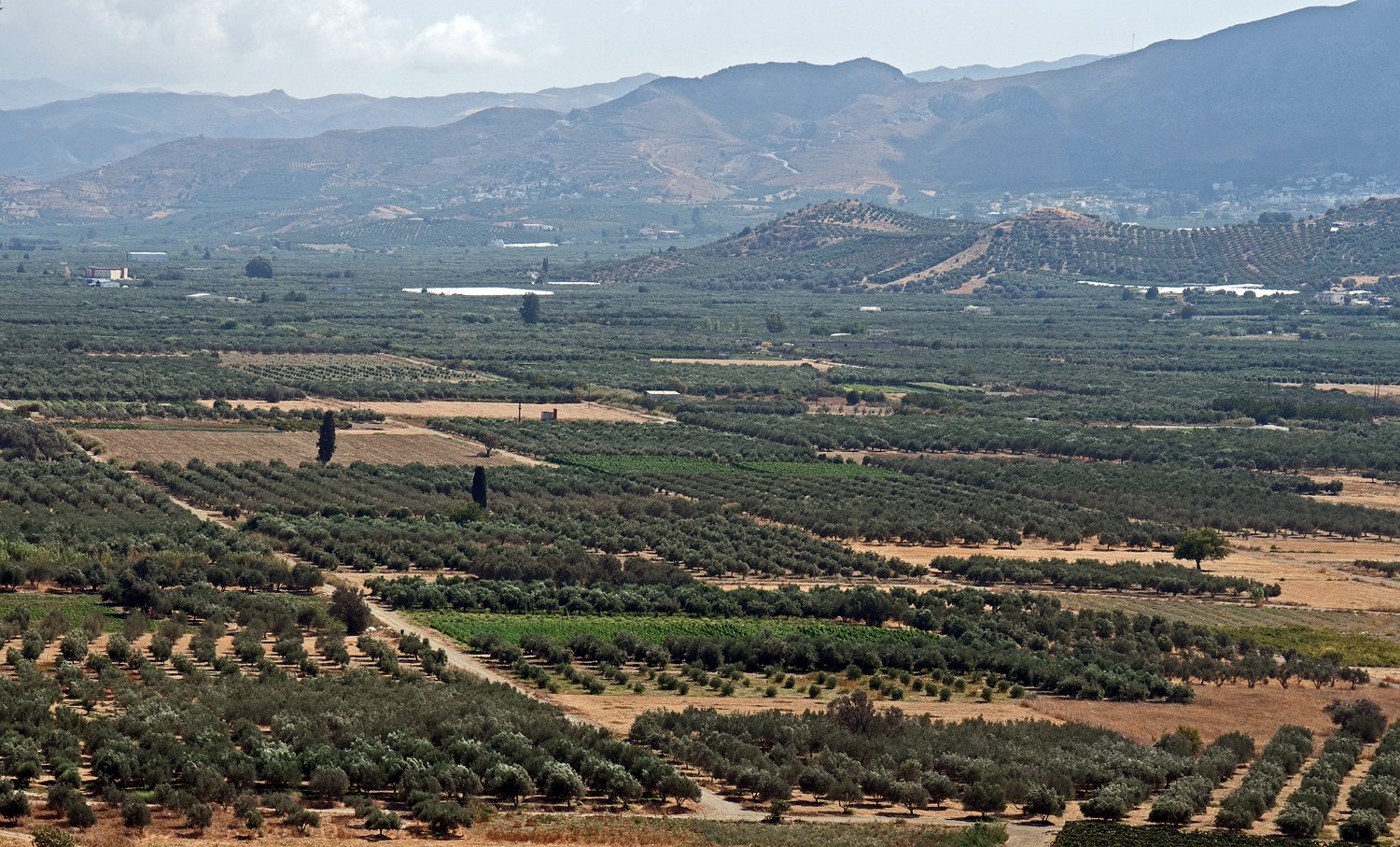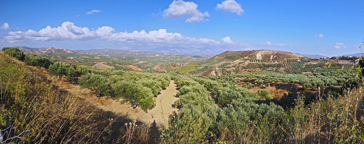 Les paysages de l'intérieur de l'ile au sud d'Héraklion sont essentiellement des paysages d'oliveraies