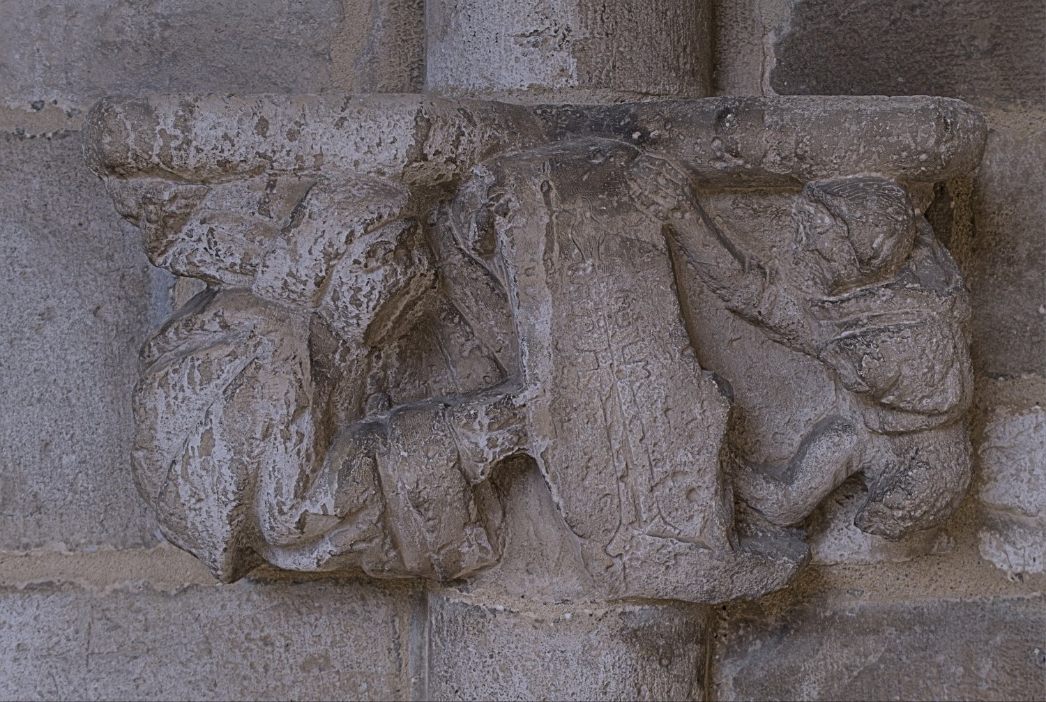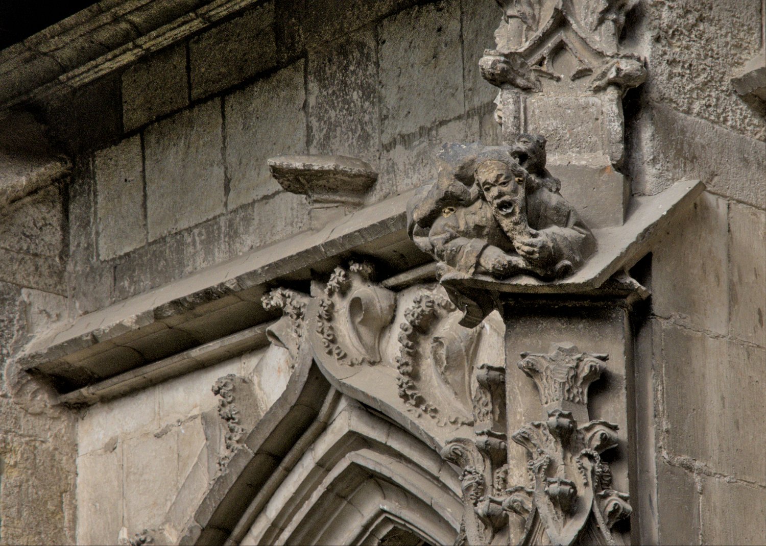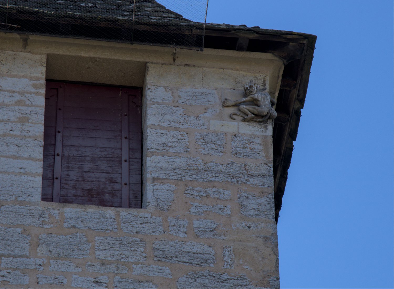 Le diablotin qui essaie d'enlever une pierre de la tour centrale  Cette sculpture rappellee une légende sur le rôle du diable dans la construction du pont
