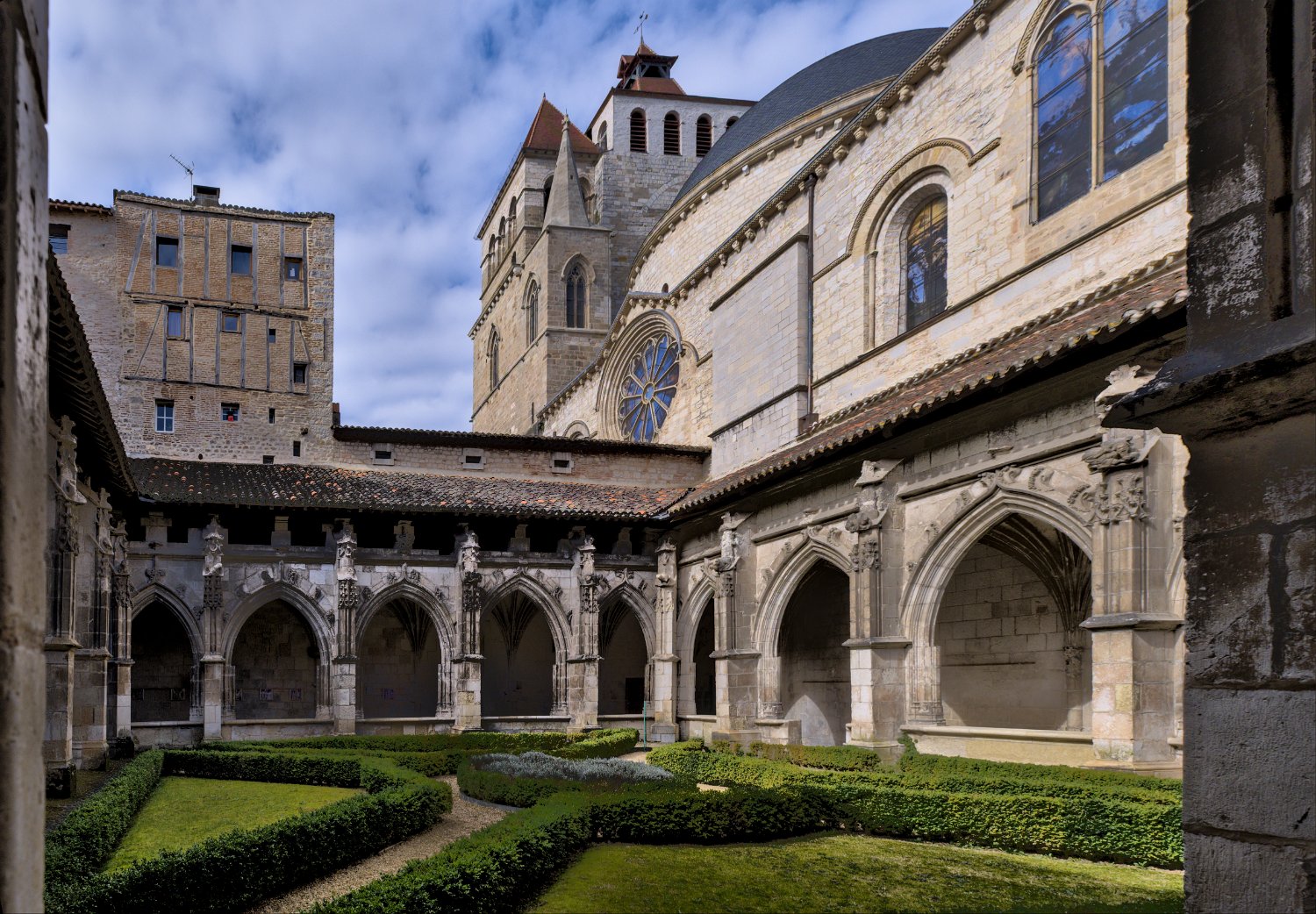 Le cloître  Le jardin du cloître de la cathédrale, "Le préau céleste" est d'inspiration religieuse. Il fait référence au Cantique des Cantiques ainsi qu'à la Verge Marie par les couleurs utilisées. Il est composé de buis et de lavande.