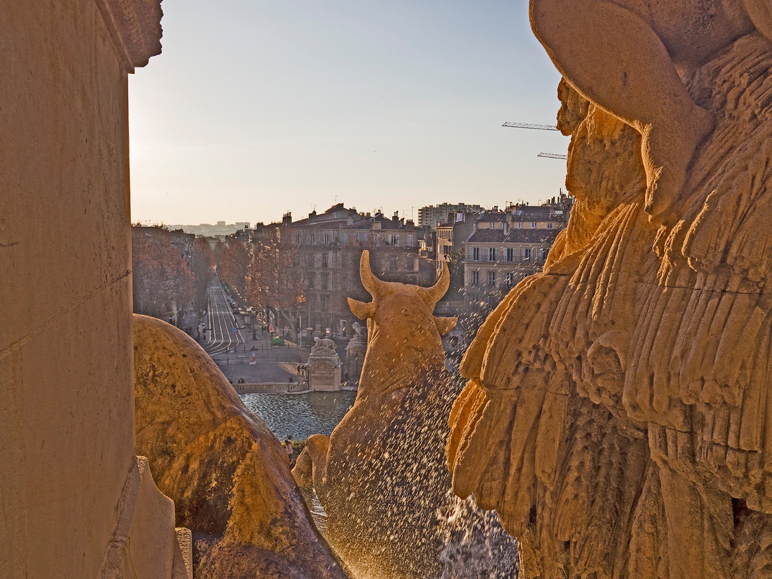 Palais Longchamp - un des taureaux de Camargue de la fontaine