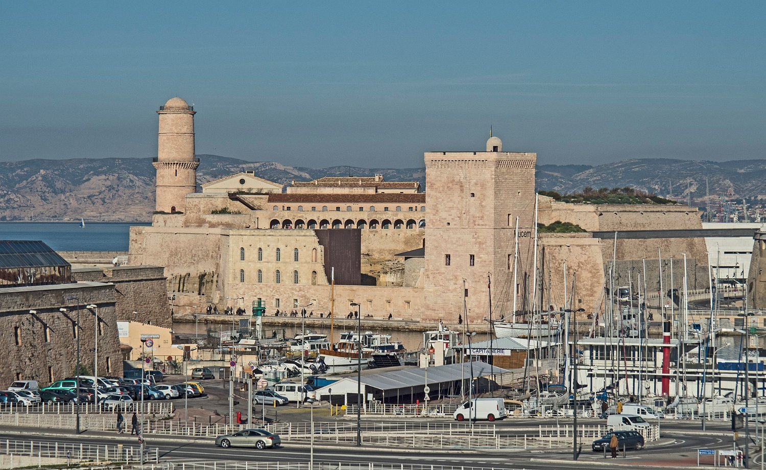 Fort Saint Jean - au fond à gauche la tour carrée du roi René