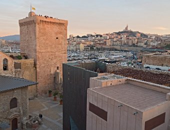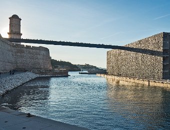 Le forts Saint Jean vue du côté port et la passerelle du Mucem