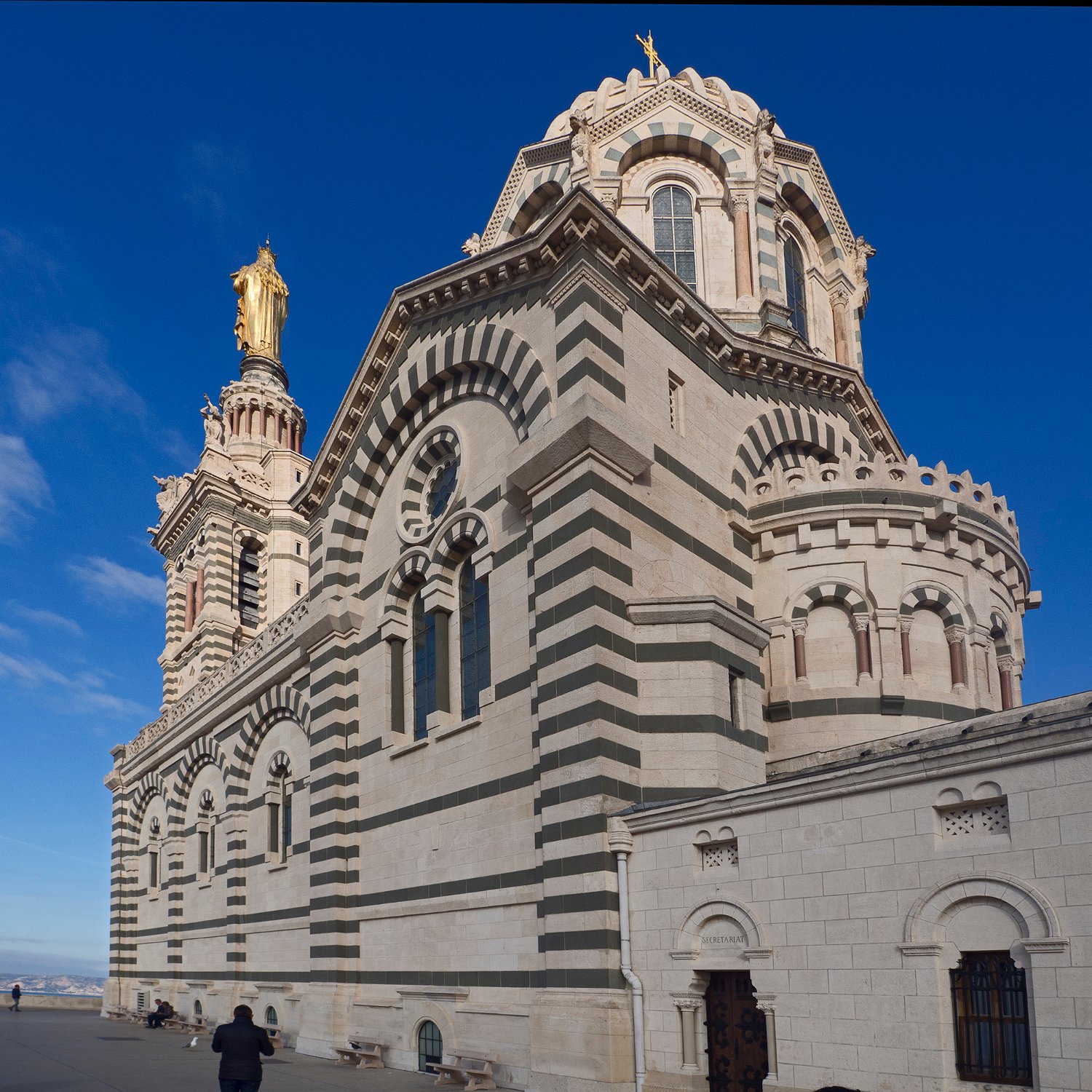 Marseille possède un patrimoine religieux très riche de différents styles architecturaux. La basilique Notre Dame de la Garde est la plus connue, mais la ville de Marseille comporte 111 églises dont 72 sont la propriété de la ville