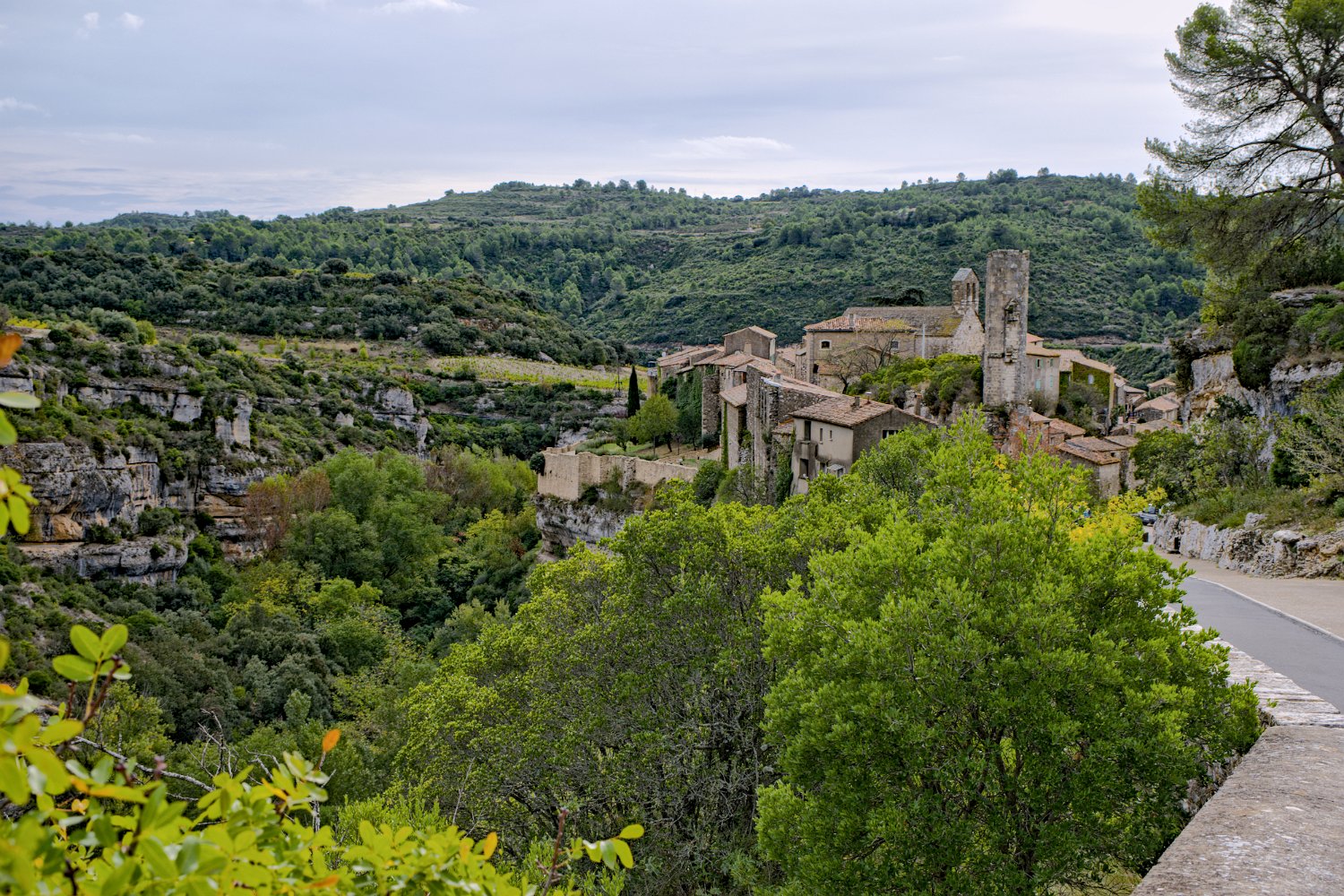 Vue sur Minerve au bord des gorges du Brian