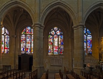 Montfort l'Amaury est une petite ville (environ 3000 ha) de la région parisienne (Yvelines) connue, en autres richesses architecturales, pour les vitraux de son église. La ville a été sous les feux de l'actualité très récemment lors du décès de Charles Aznavour qui y est enterré.