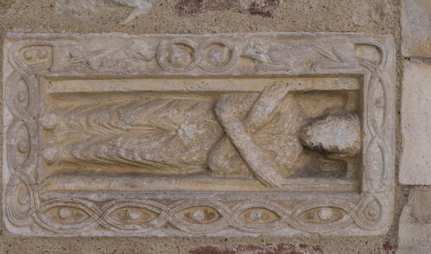 Pierre tombale à gauche du portail. Ne porte aucune inscription.