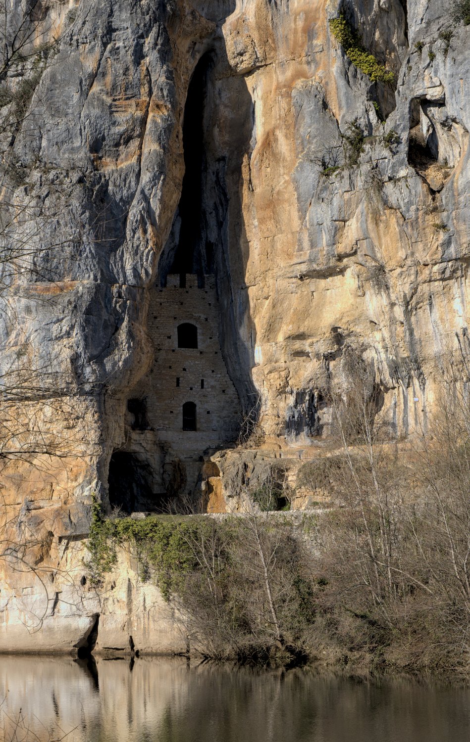 Grotte fortifiée au bord du Lot à Bouziès