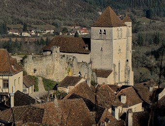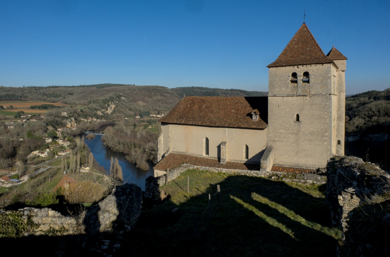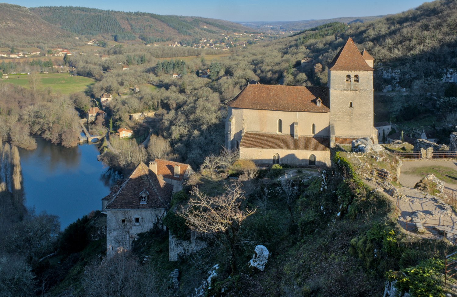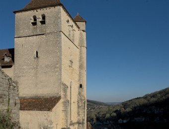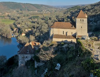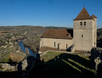 L'église et vue sur la vallée du lot