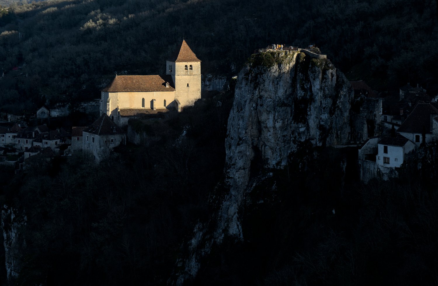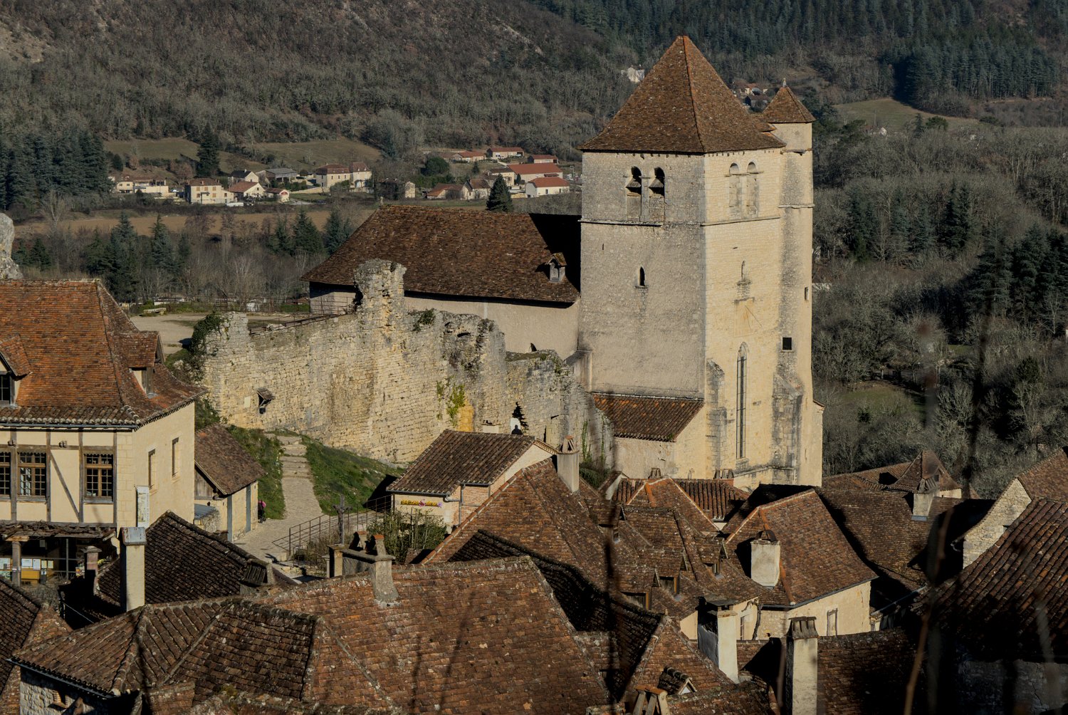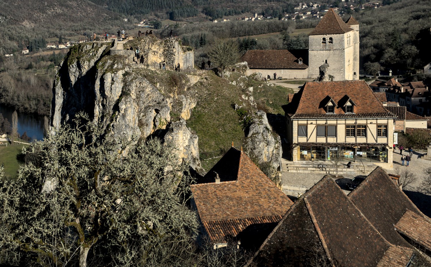 L'église et vue sur la vallée du lot
