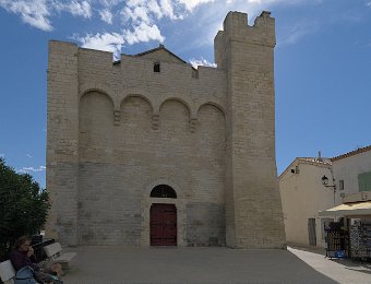 Vue de la ville avec ses deux monuments emblématiques : l'église (à droite) et le musée Baroncelli (à gauche)