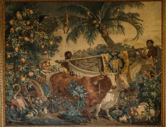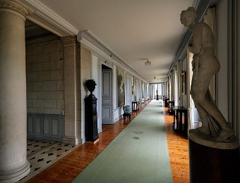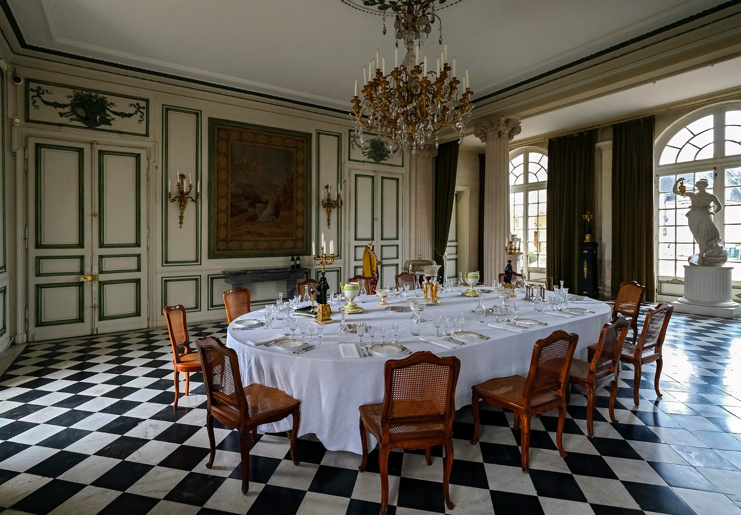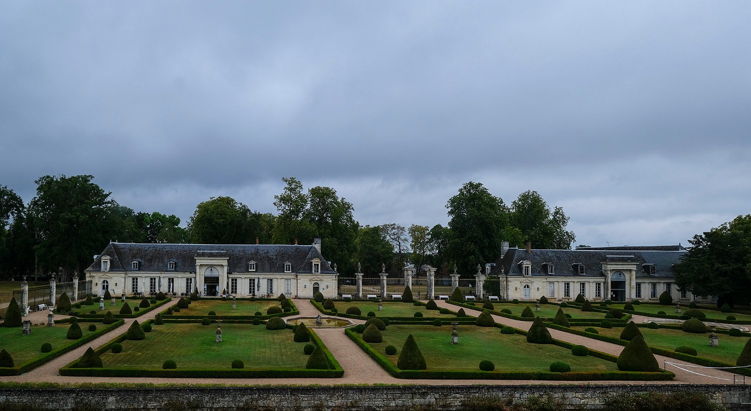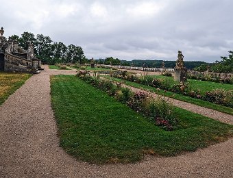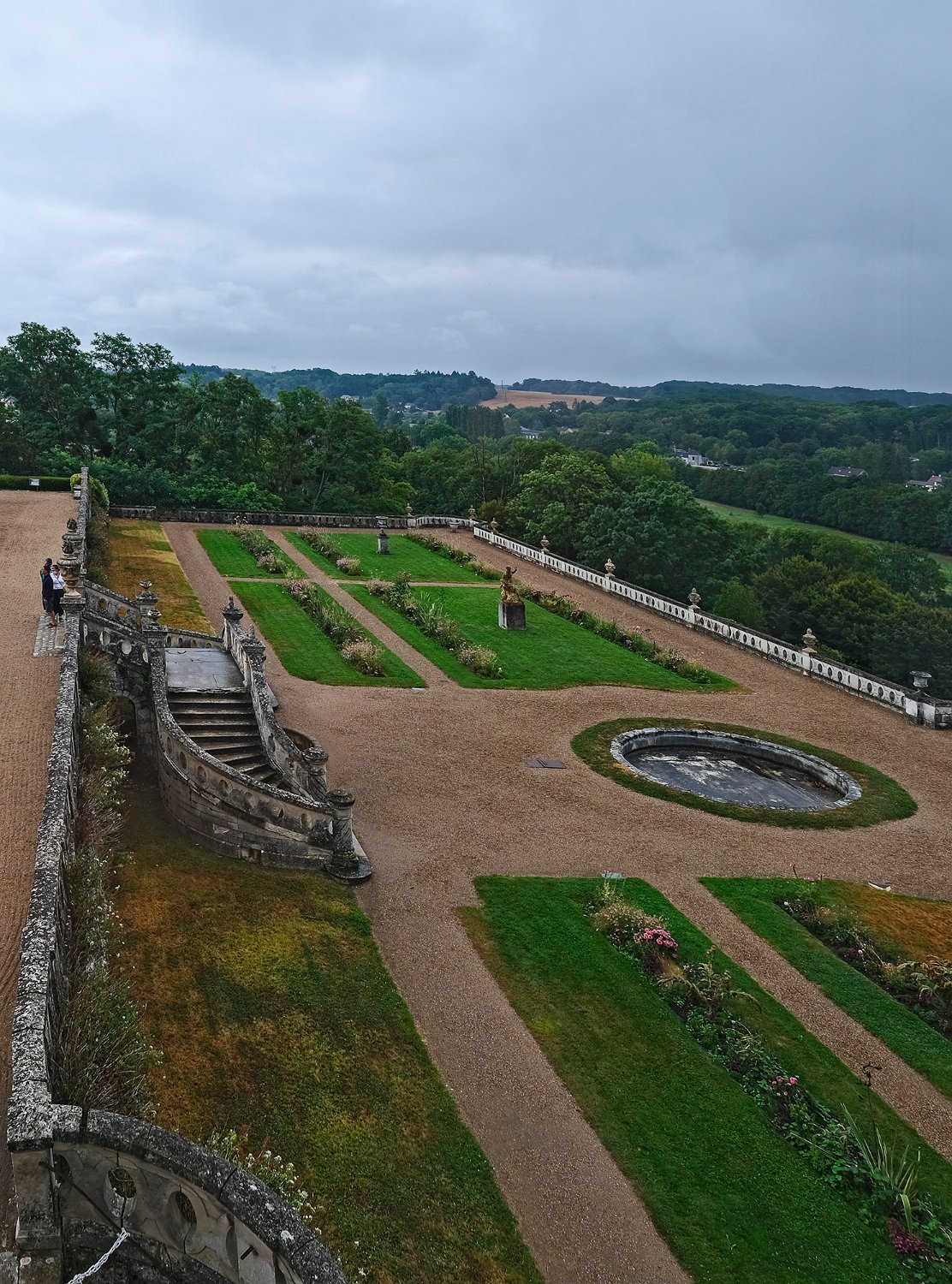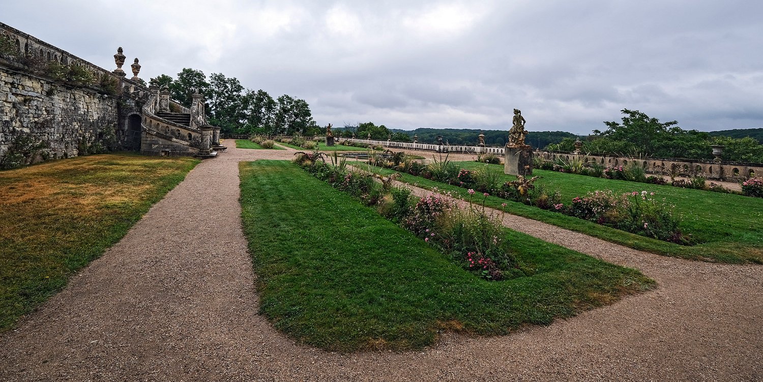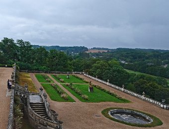 Le jardin à la française et le restaurant de l'Orangerie vus de la grande galerie