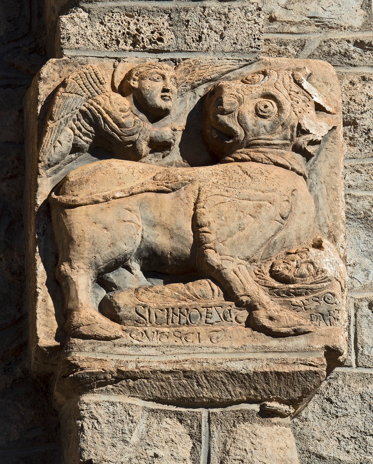 Partie d'un autel païen en réemploi.