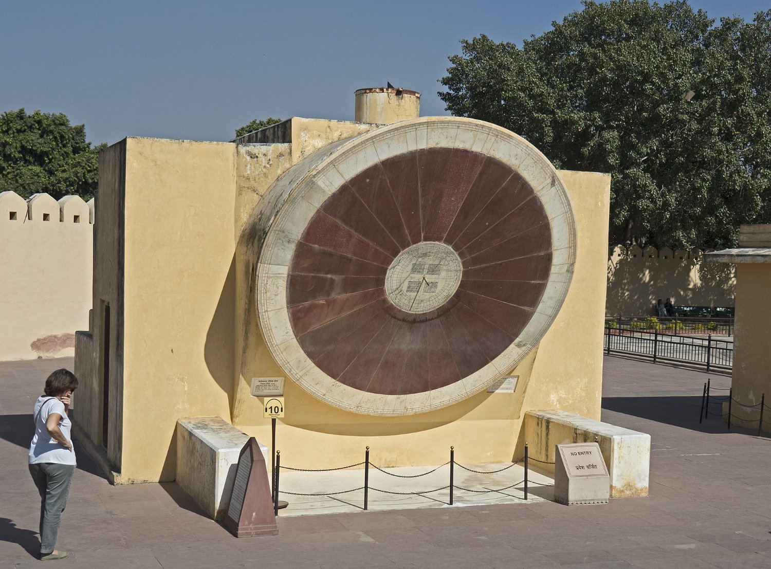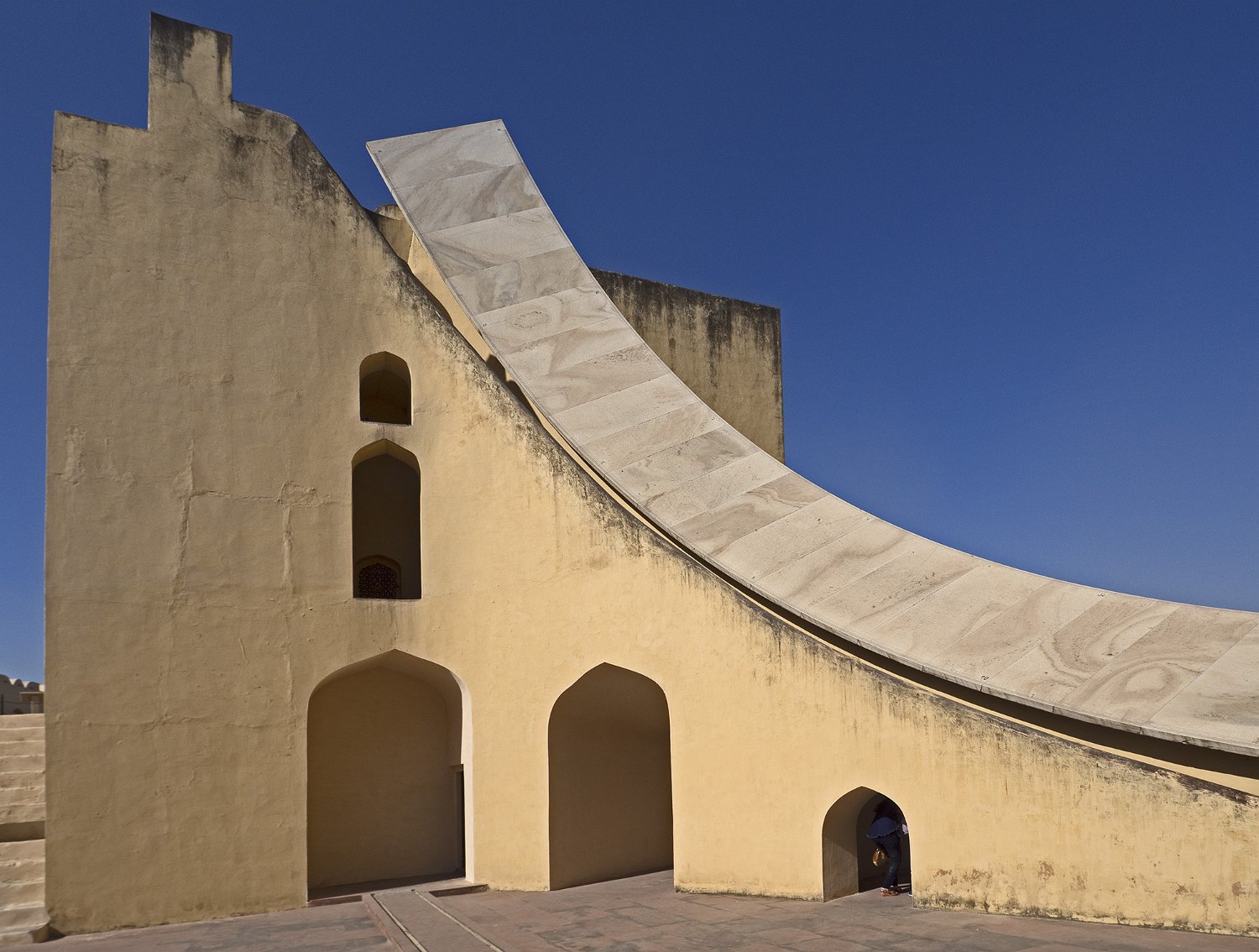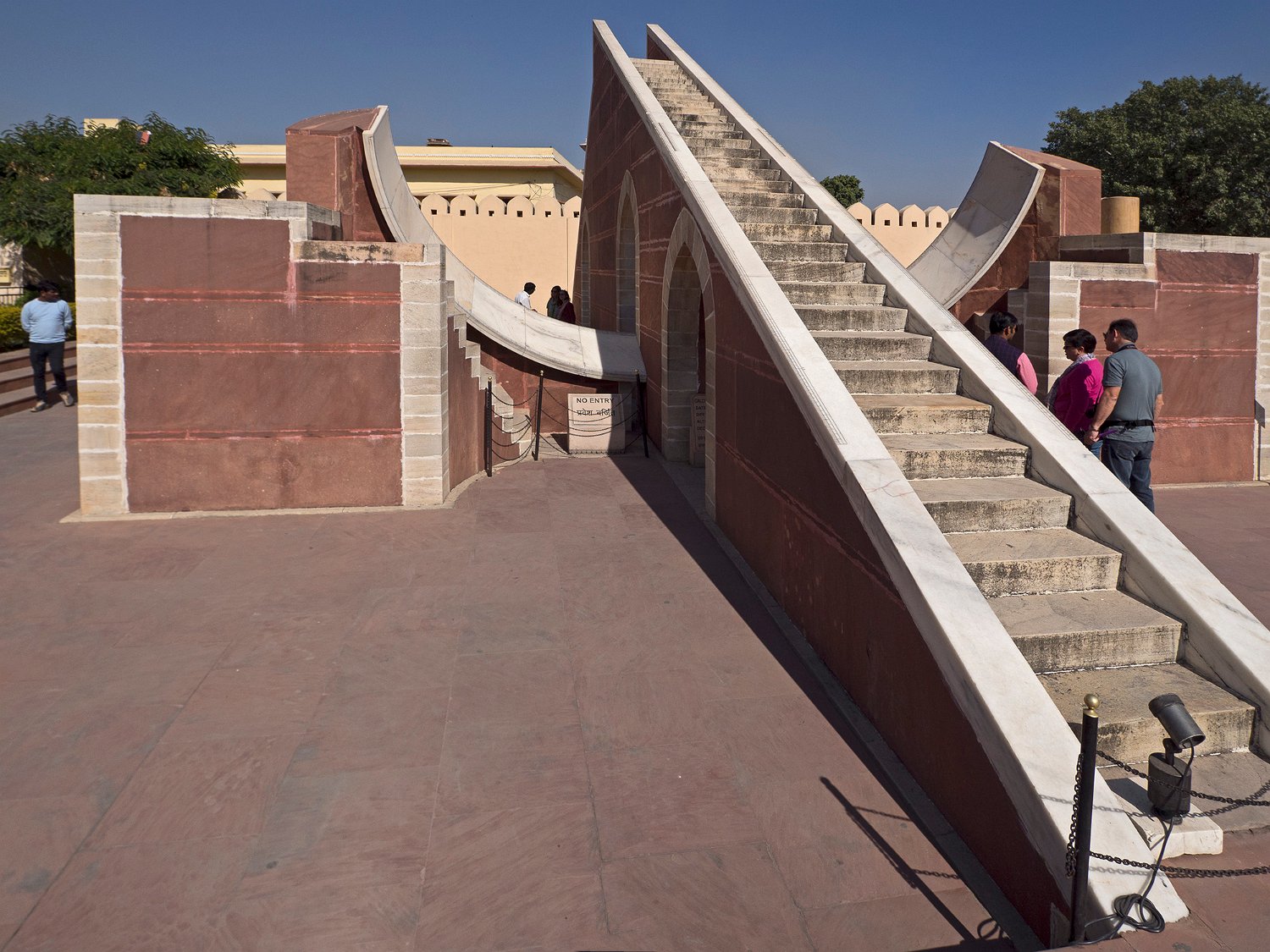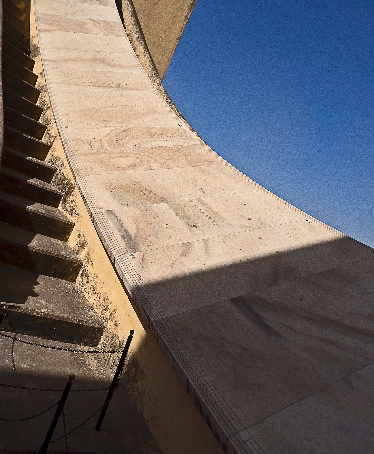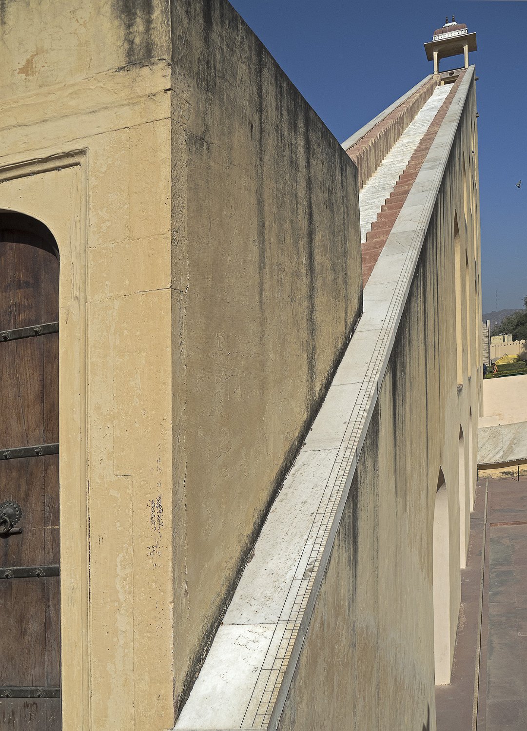2Le grand Samrat Yantra (cadran solaire) vue de côté Il s'agit d'un énorme quadran solaire de 33m de hauteur totale. Précis à 2 secondes près