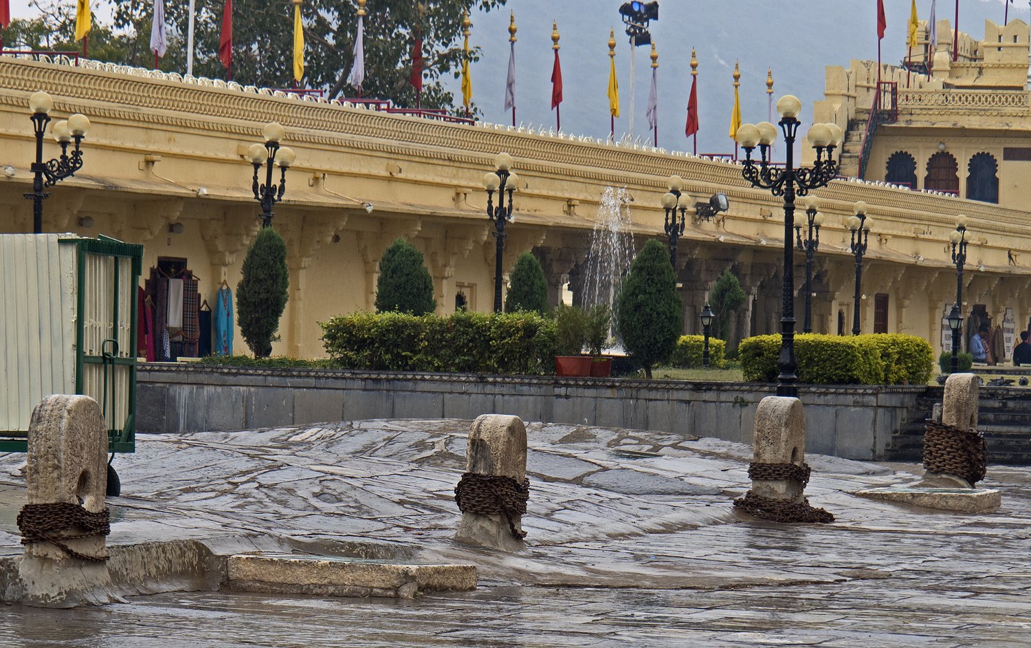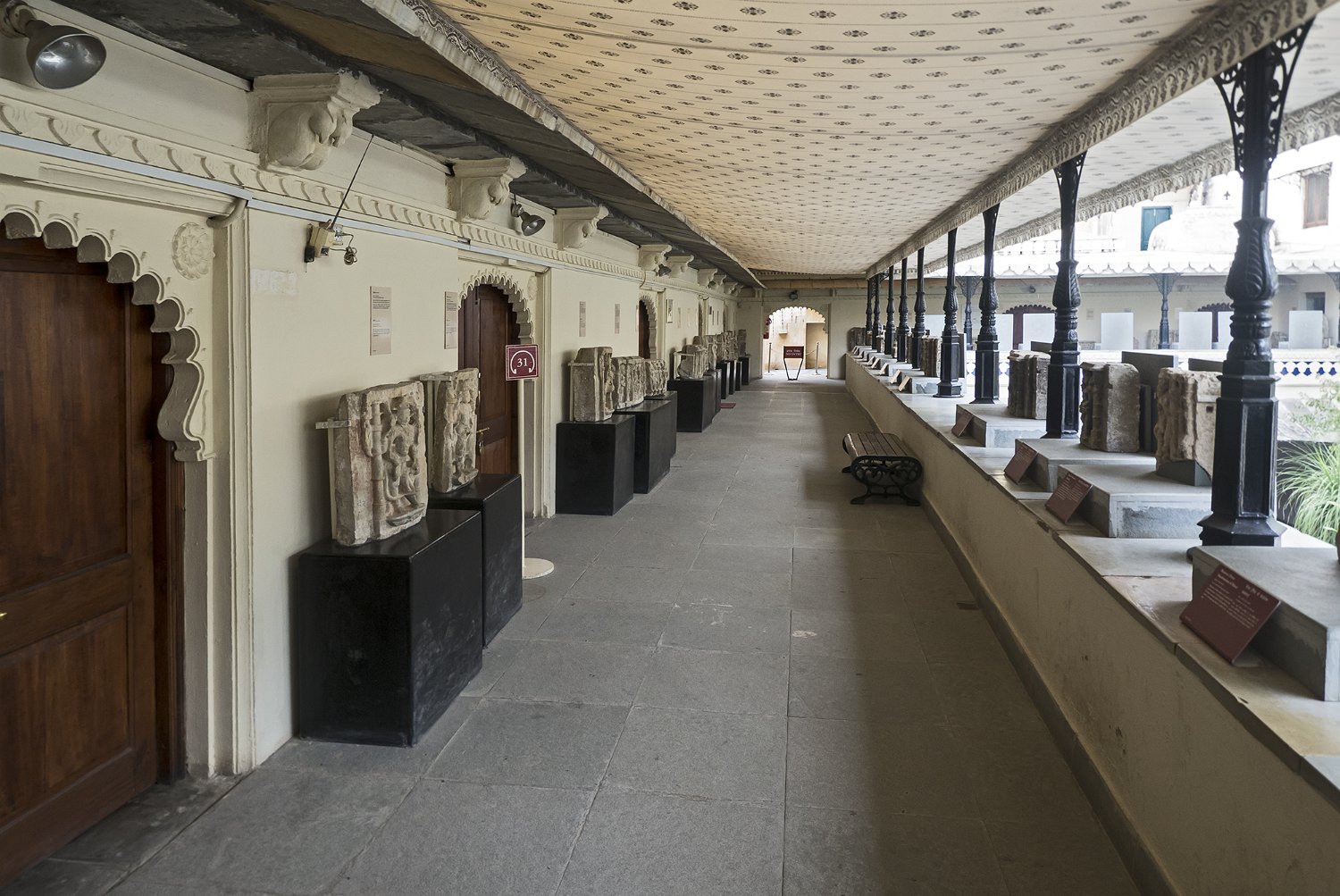 Instrument de musique traditionnel Sculpture Musée - Mobilier La grande cour (Maneh Chowk) et l'entrée du city palace (Tripolia gates) - Vue sur la ville d'Udaipur