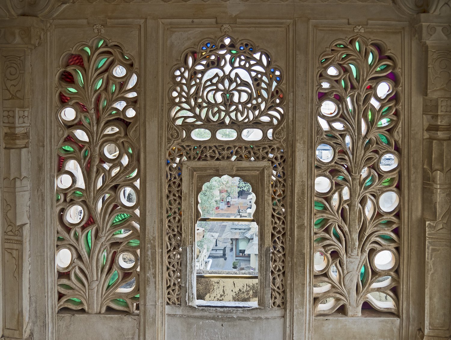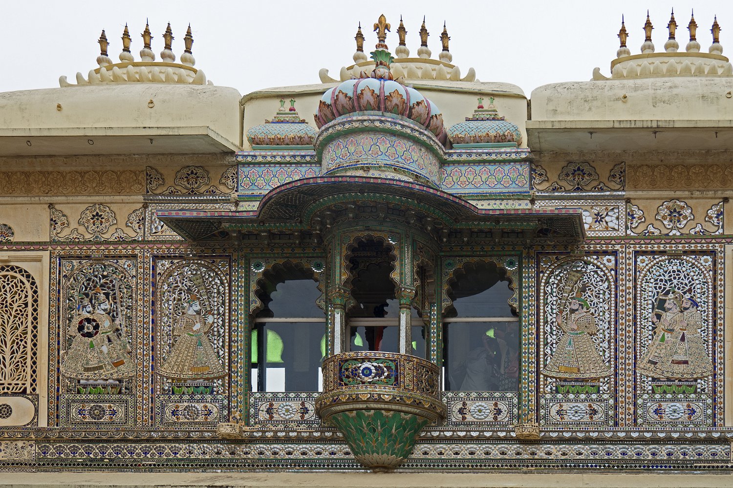 Le City Palace d'Udaipur (Inde - Rajasthan) est un ensemble de onze palais construits en 1559 par le Maharana Udai Singh (1522-1572) en même temps que la ville d'Udaipur. Il a fait l'objet d'aménagements complémentaires par ses successeurs durant près de 3 siècles.