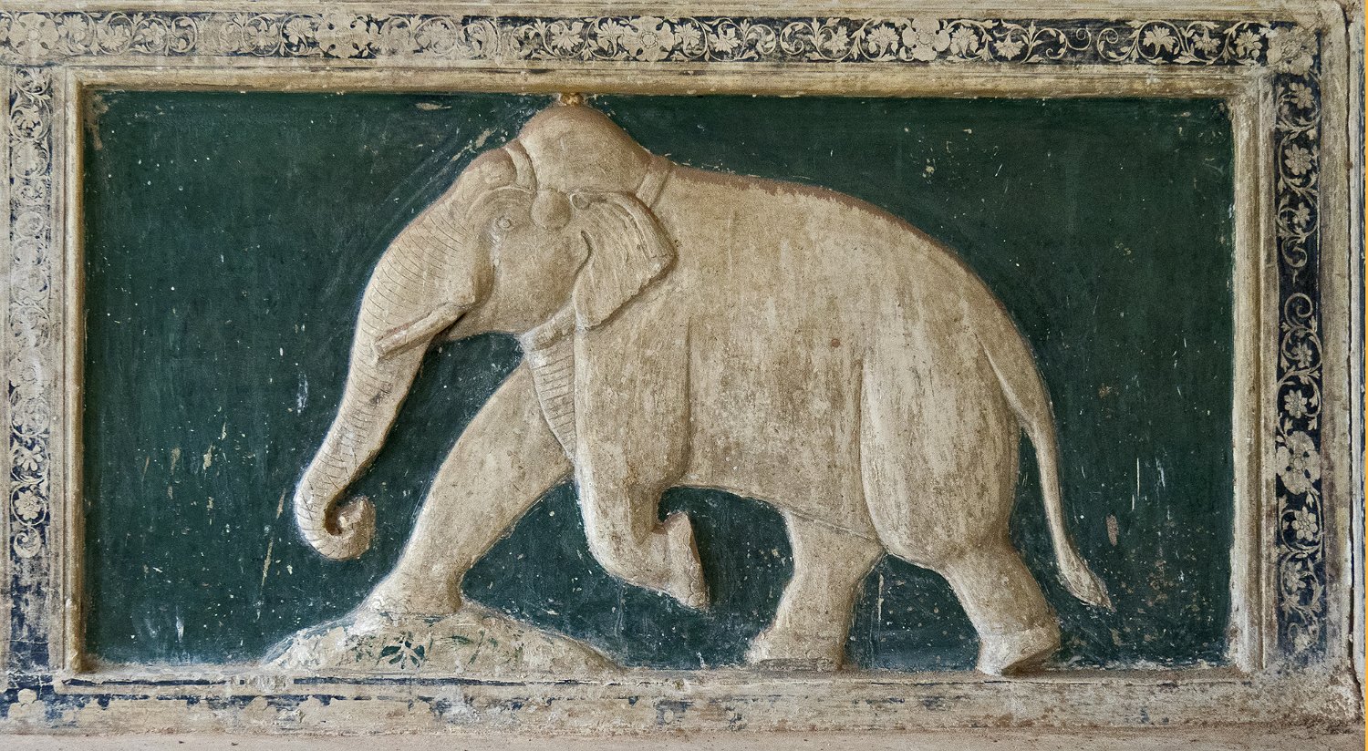 Porte principale (Toran Pol) Le Mardana Mahal Dans la cour d'entrée (Manesh Chowk), bosses de repos des éléphants  Les éléphants étaient attachés par une patte aux piliers et pouvaient se coucher en se calant sur les bosses Dilkush Mahal- Kanch ki Burj (chambre)