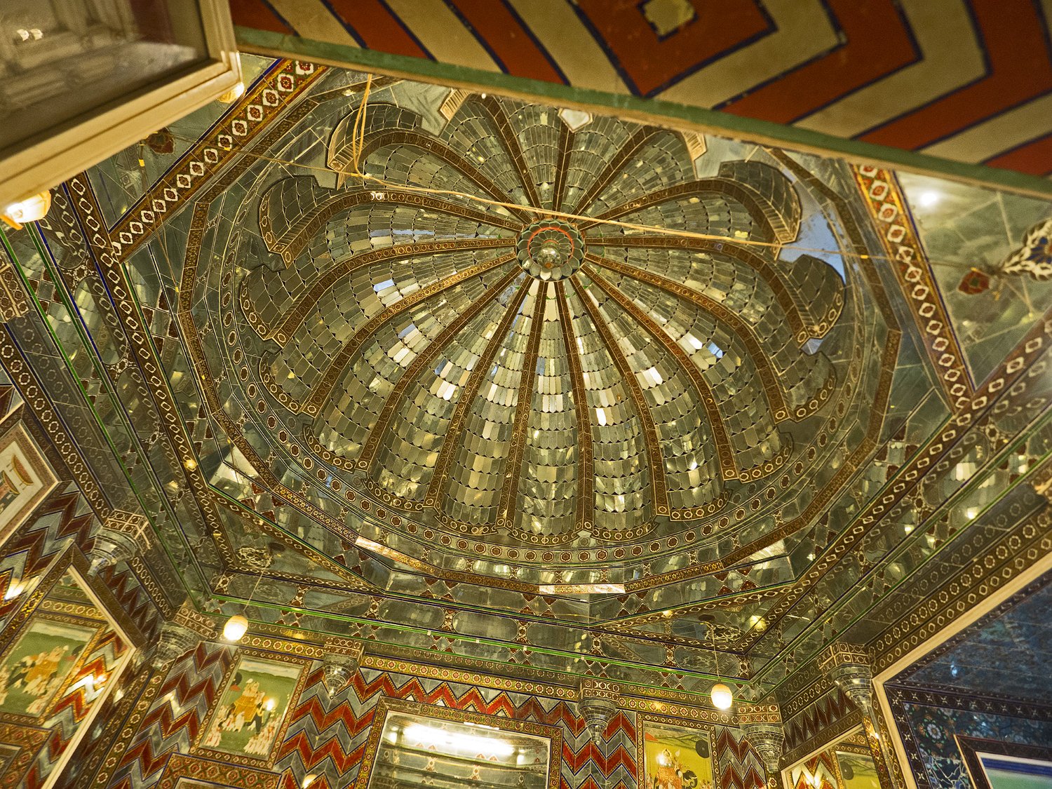Il est construit en granit et en marbre et très richement décoré de marbre, de miroirs, d'argent et de peintures murales.