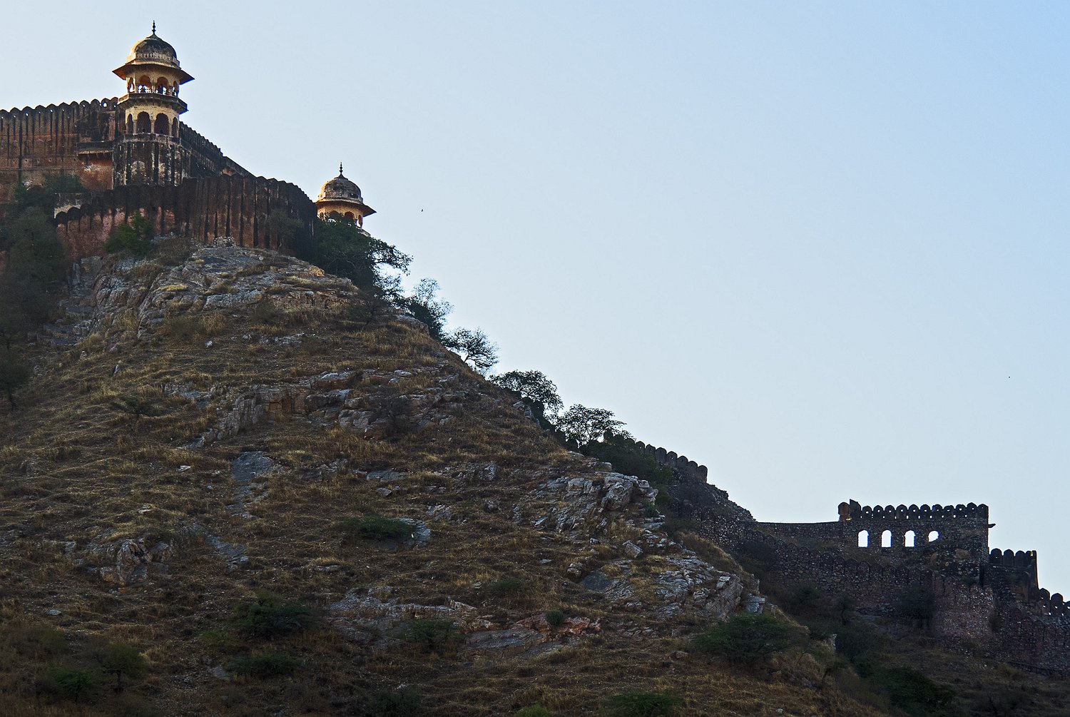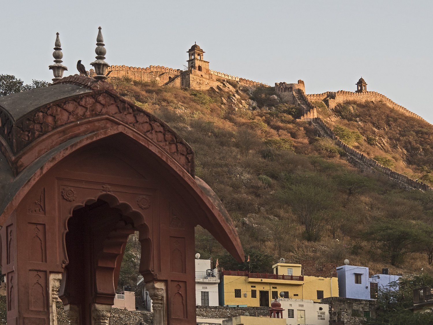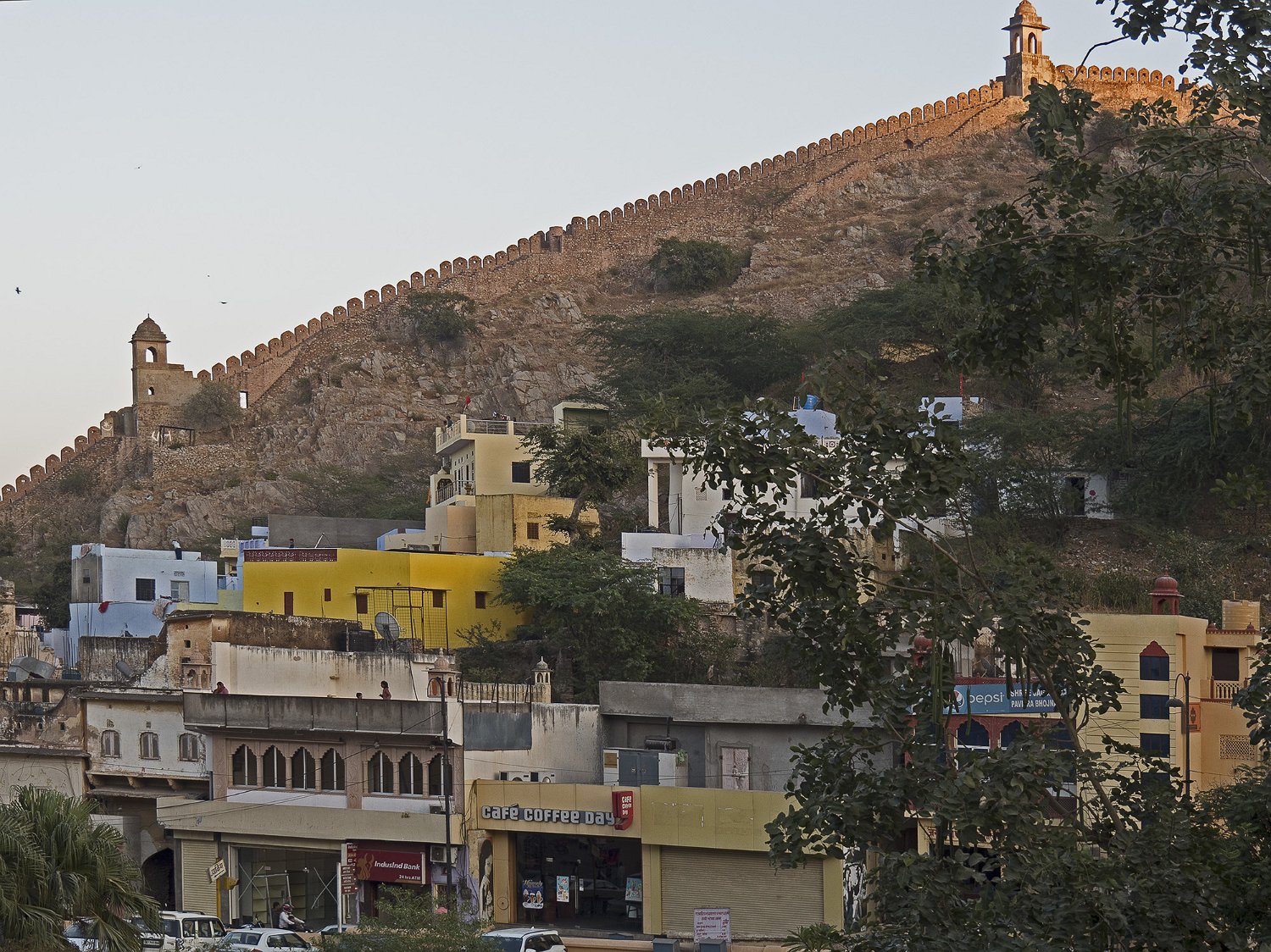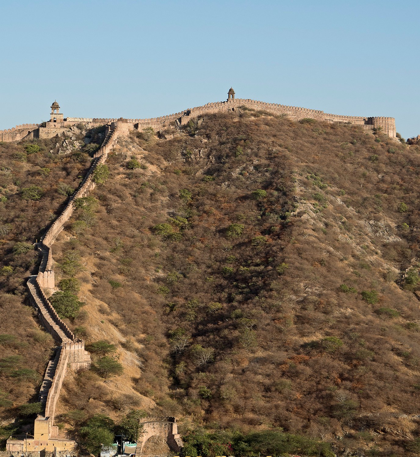 Vue de la ville d'Amber et de ses fortification  Les fortifications font 16km de long Amber vu de la rampe d'accès au fort Fortification sur crête et vue de la ville Vue de la forteresse de Jaigarh  et des fortifications