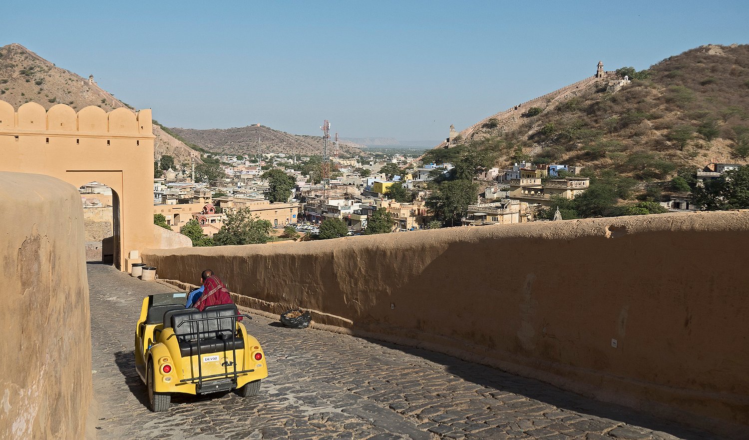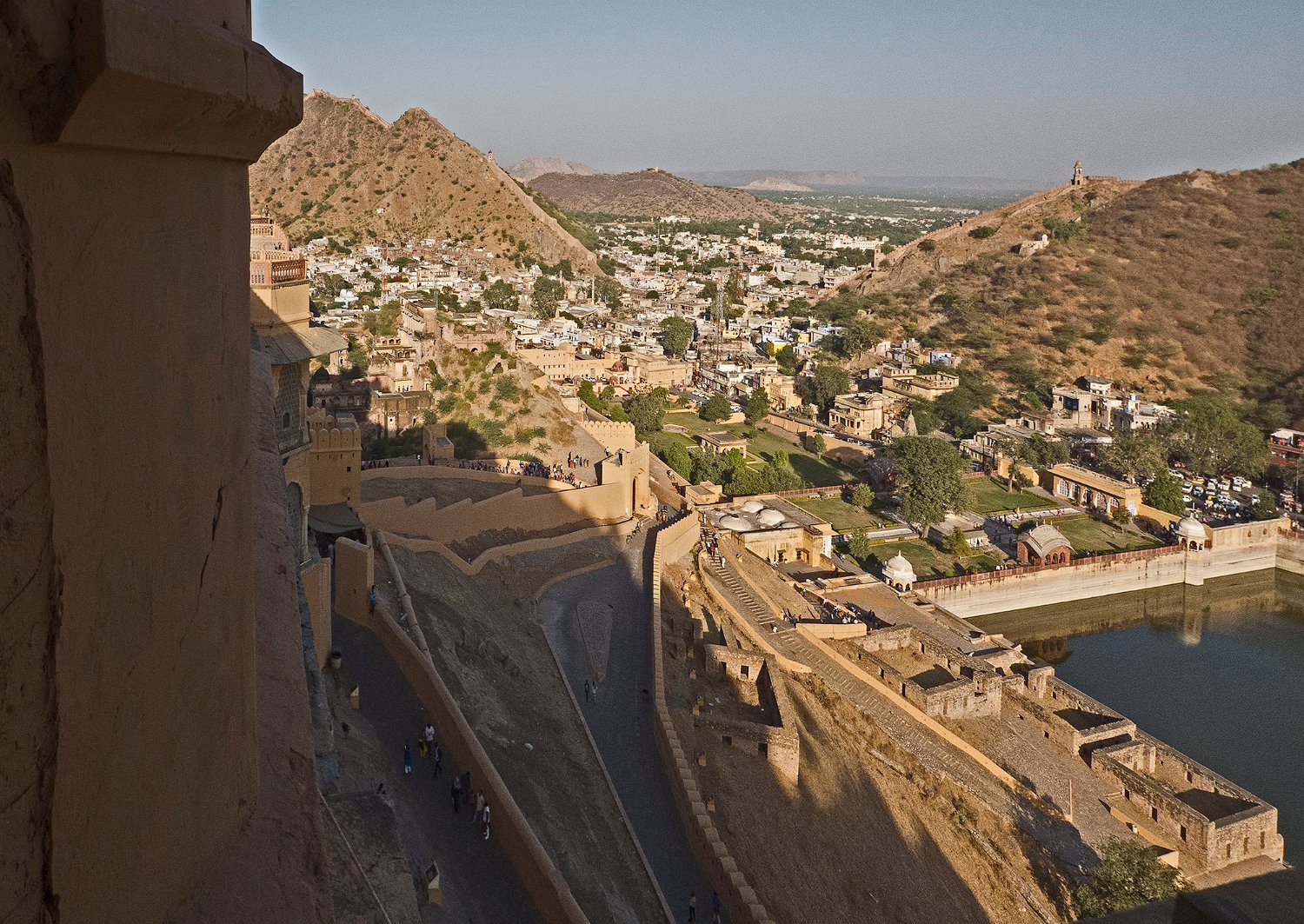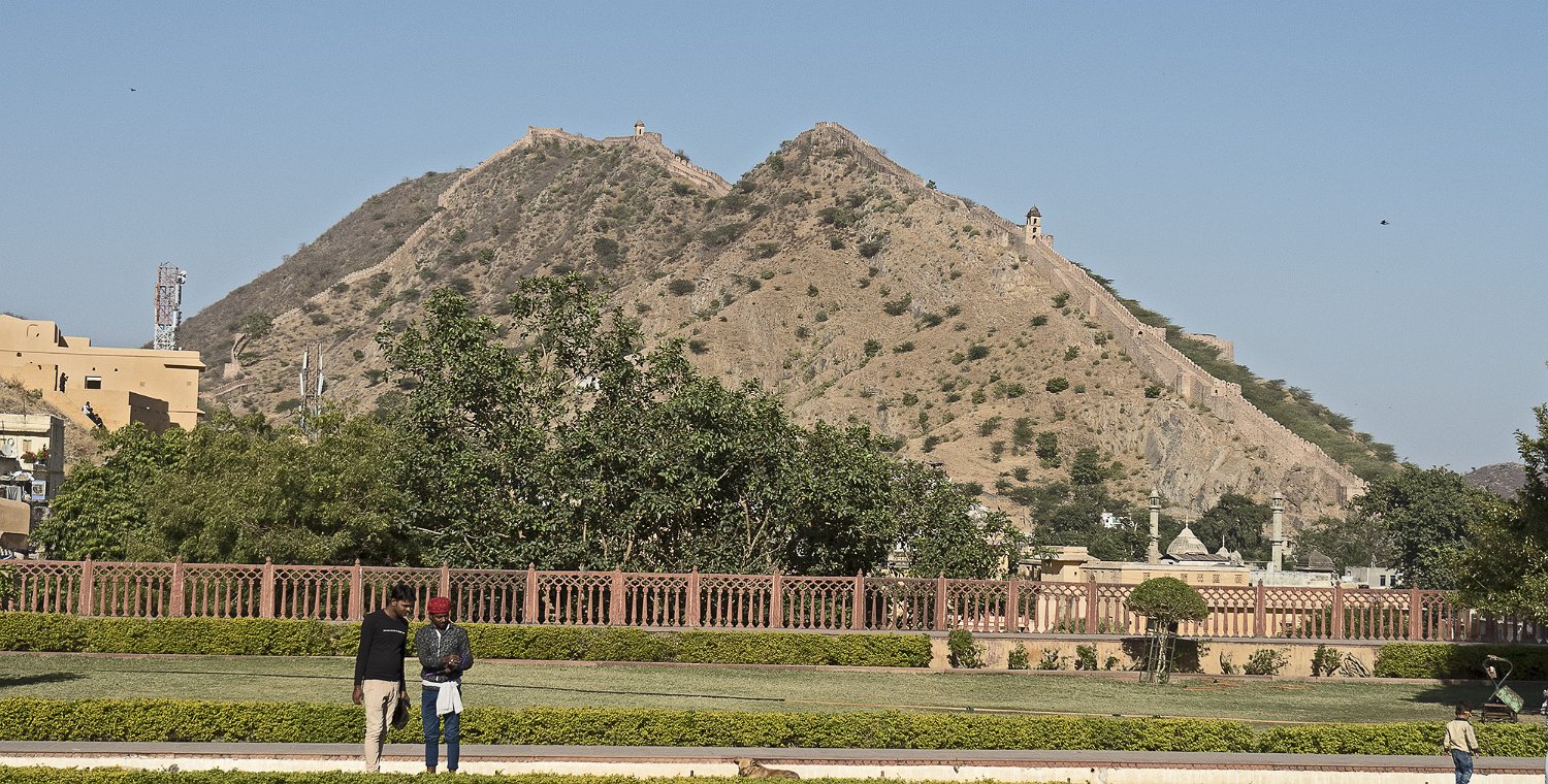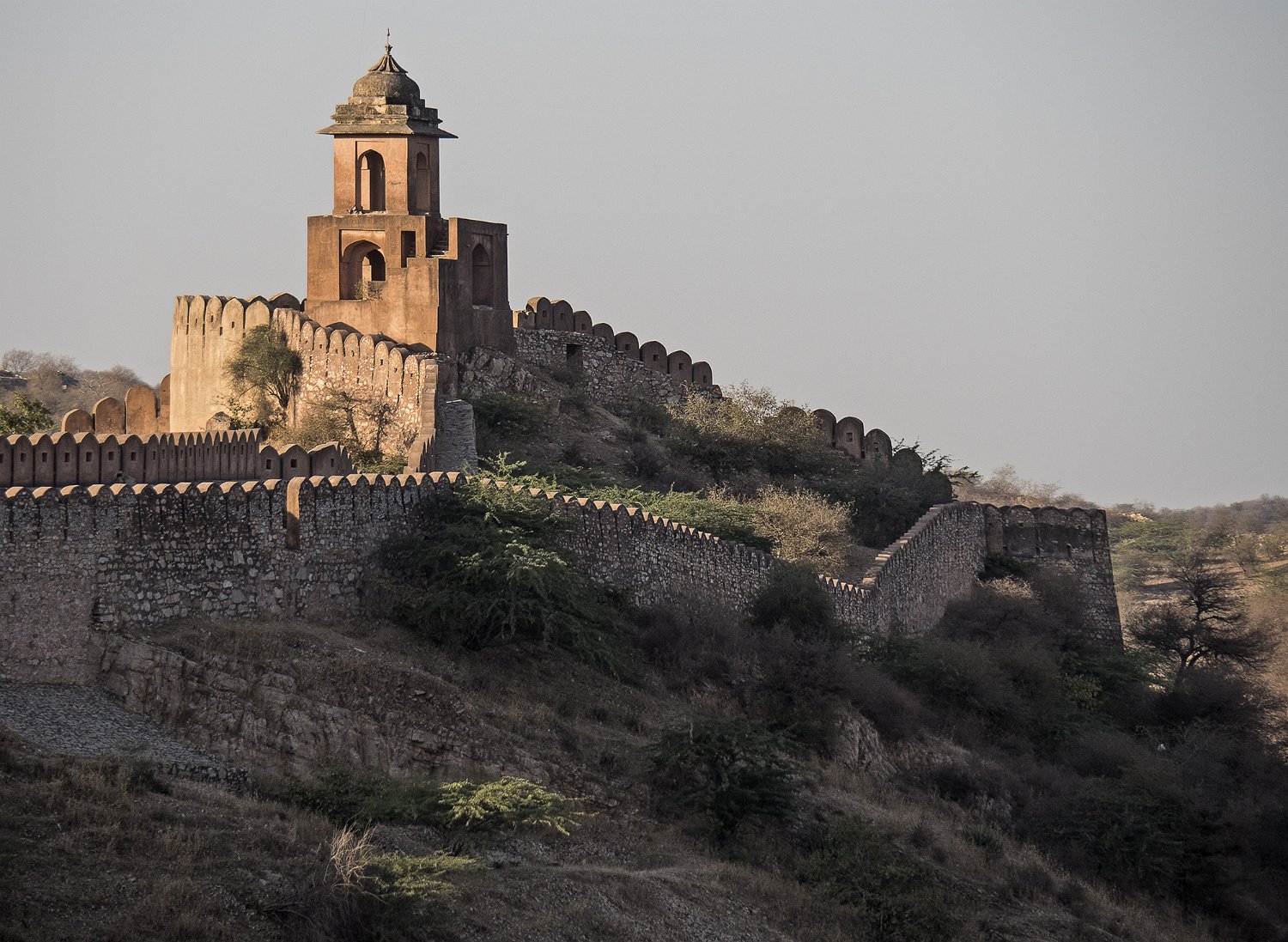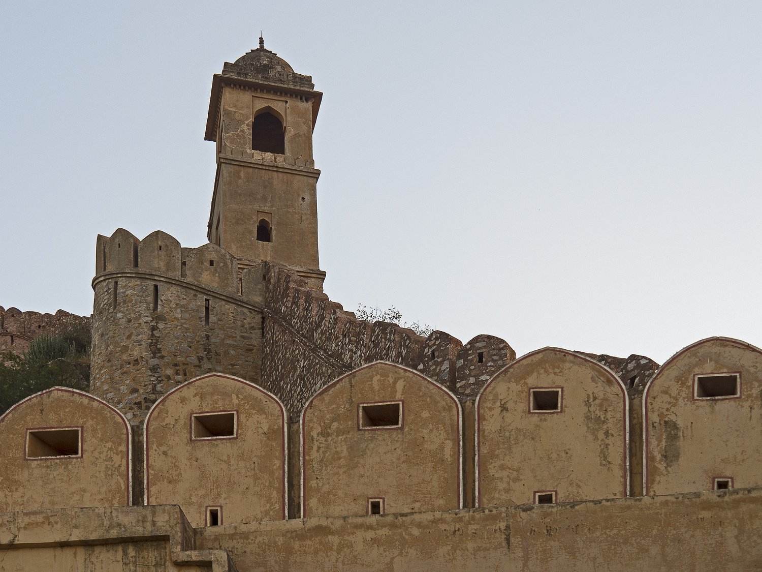 Vue de la ville d'Amber et de ses fortification  Les fortifications font 16km de long Amber vu de la rampe d'accès au fort Fortification sur crête et vue de la ville Vue de la forteresse de Jaigarh  et des fortifications