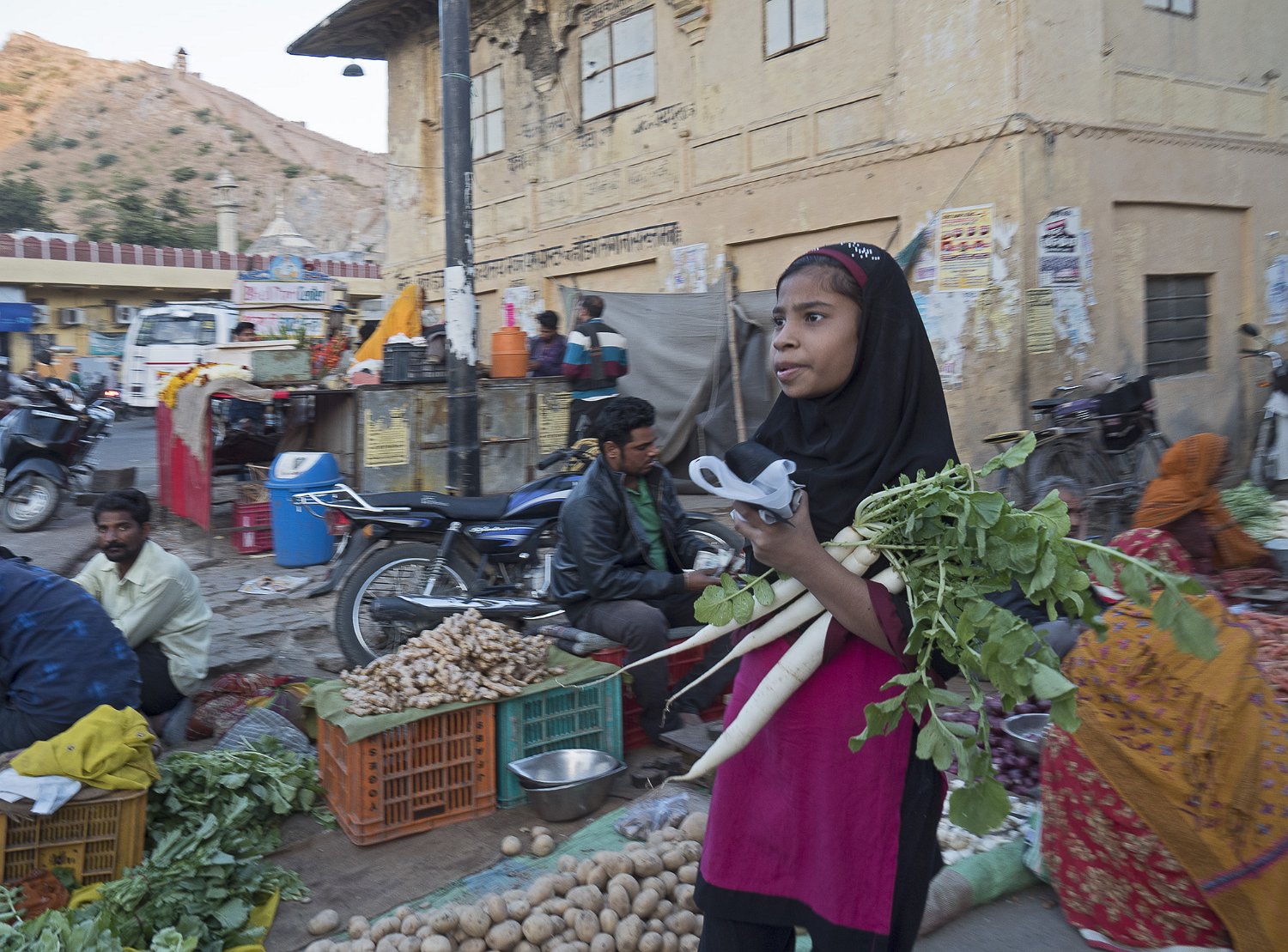 Amber est l'ancienne capitale de l'état de Ddundhar qui a été transféré à Jaipur en 1727. La ville est située à la sortie d'une gorge occupée par un lac (Maota lake).Après une longue période de stagnation, la population s'est accrue pour atteindre 452000 habitants au recensement de 2011.