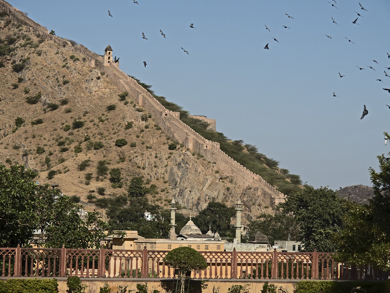 Amber et ses fortifications Singes et fortifications Fortifications sur une crête une des trois mosquées d'Amber et fortifications