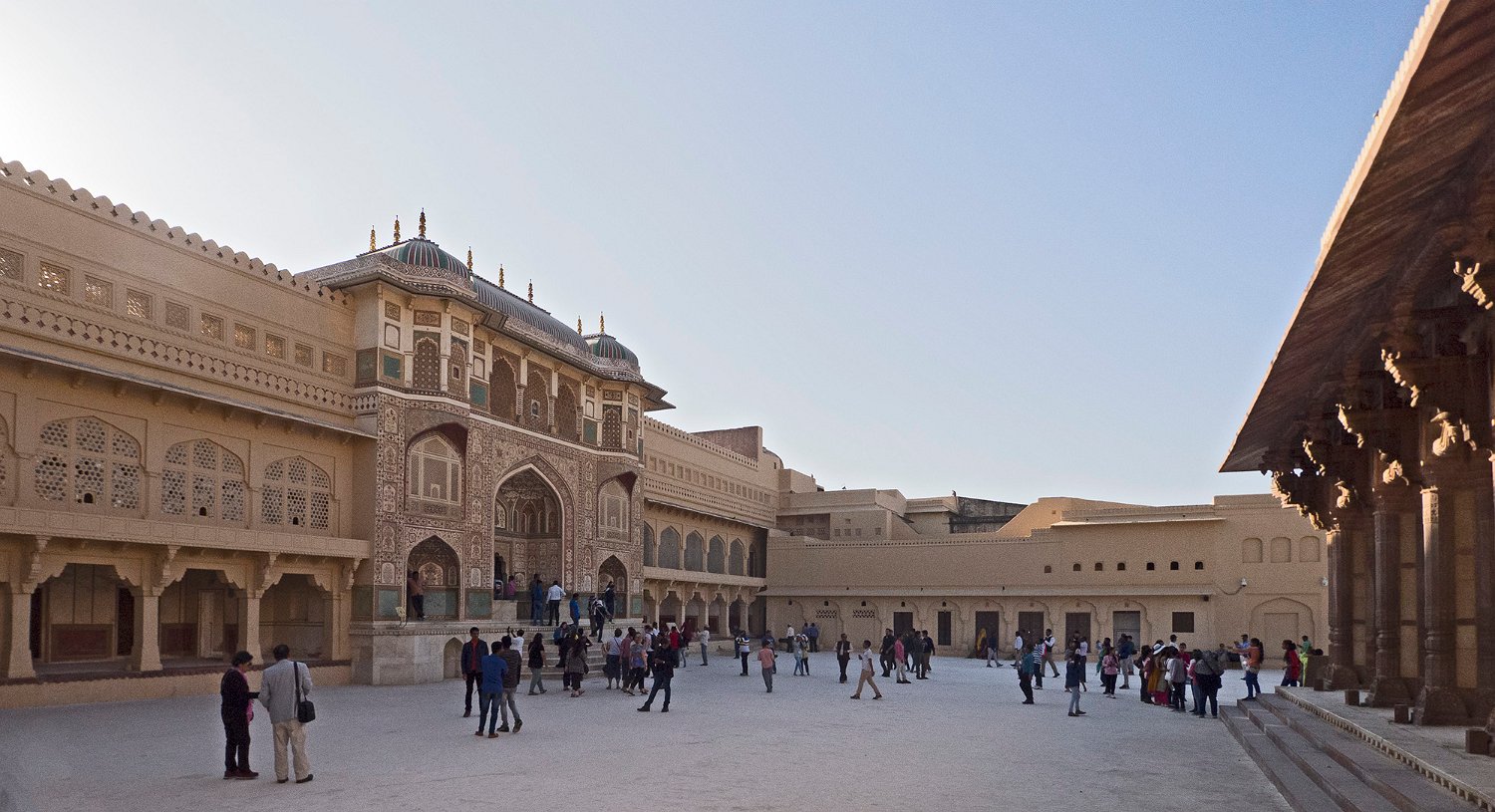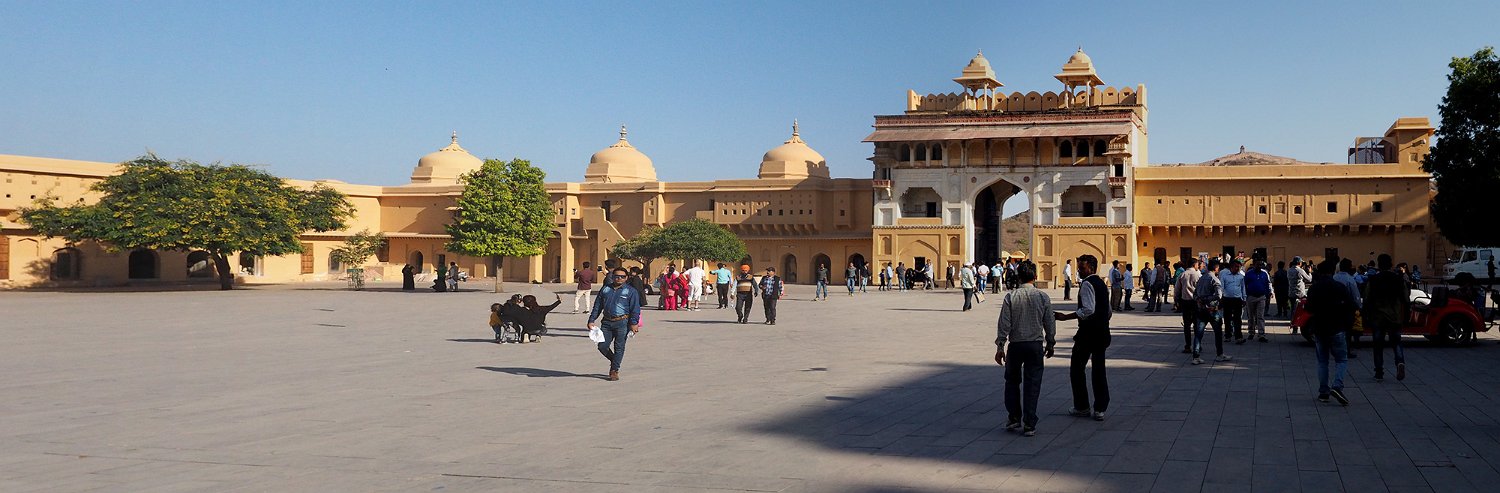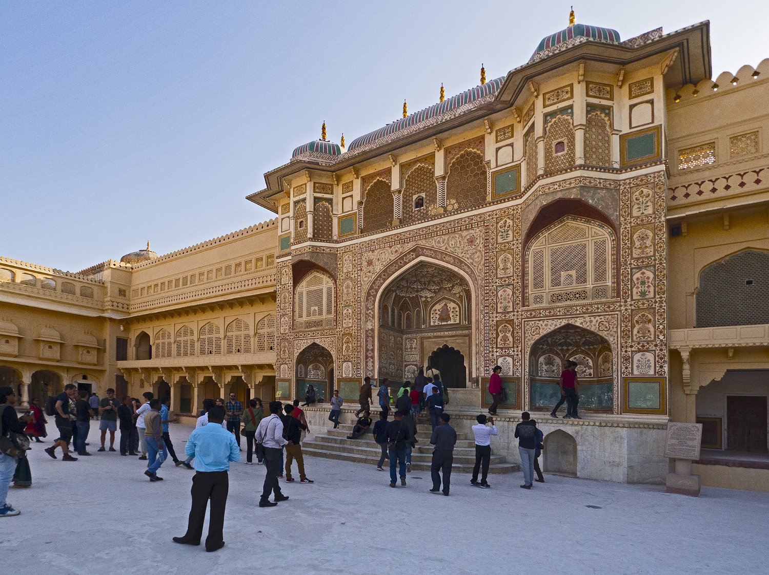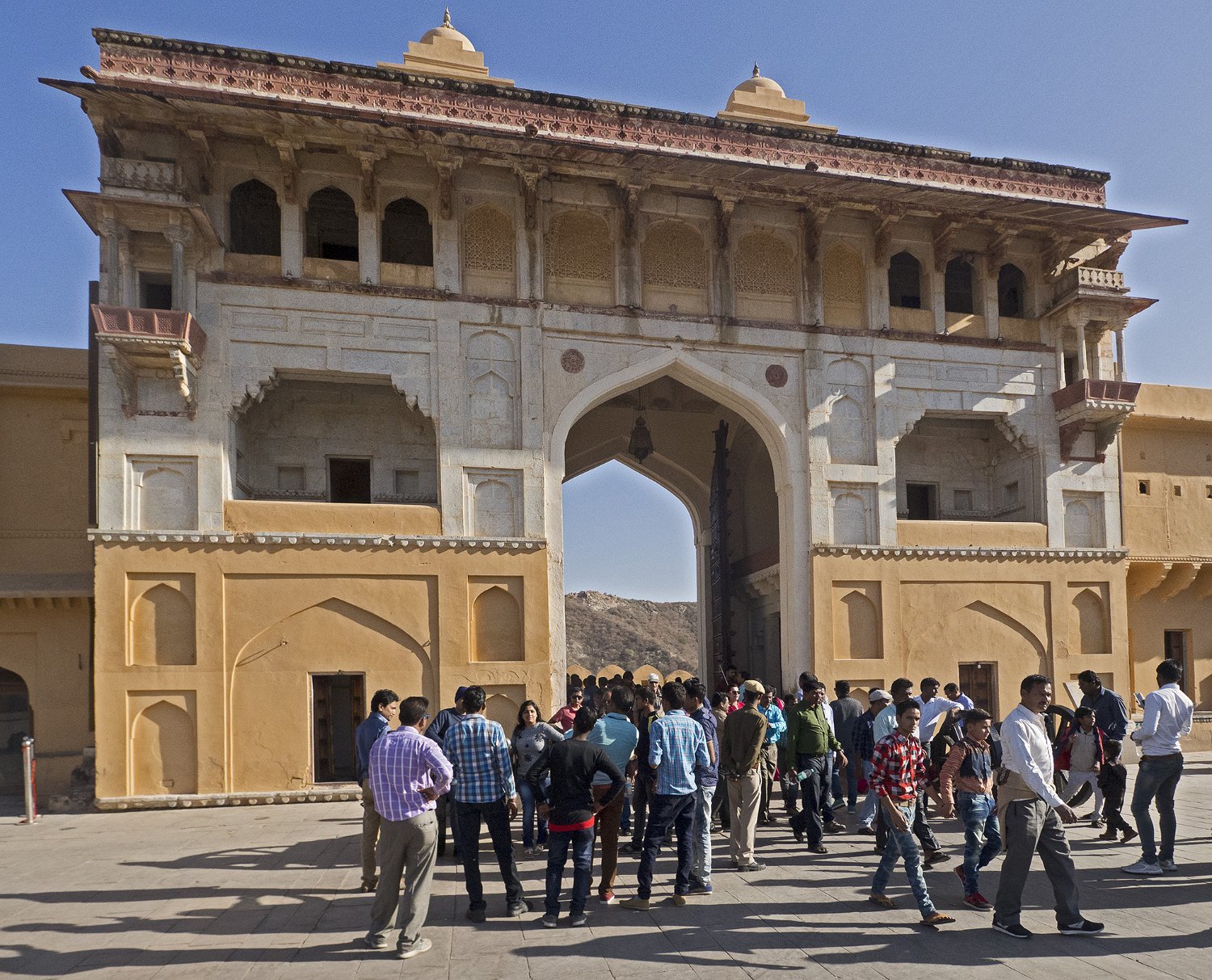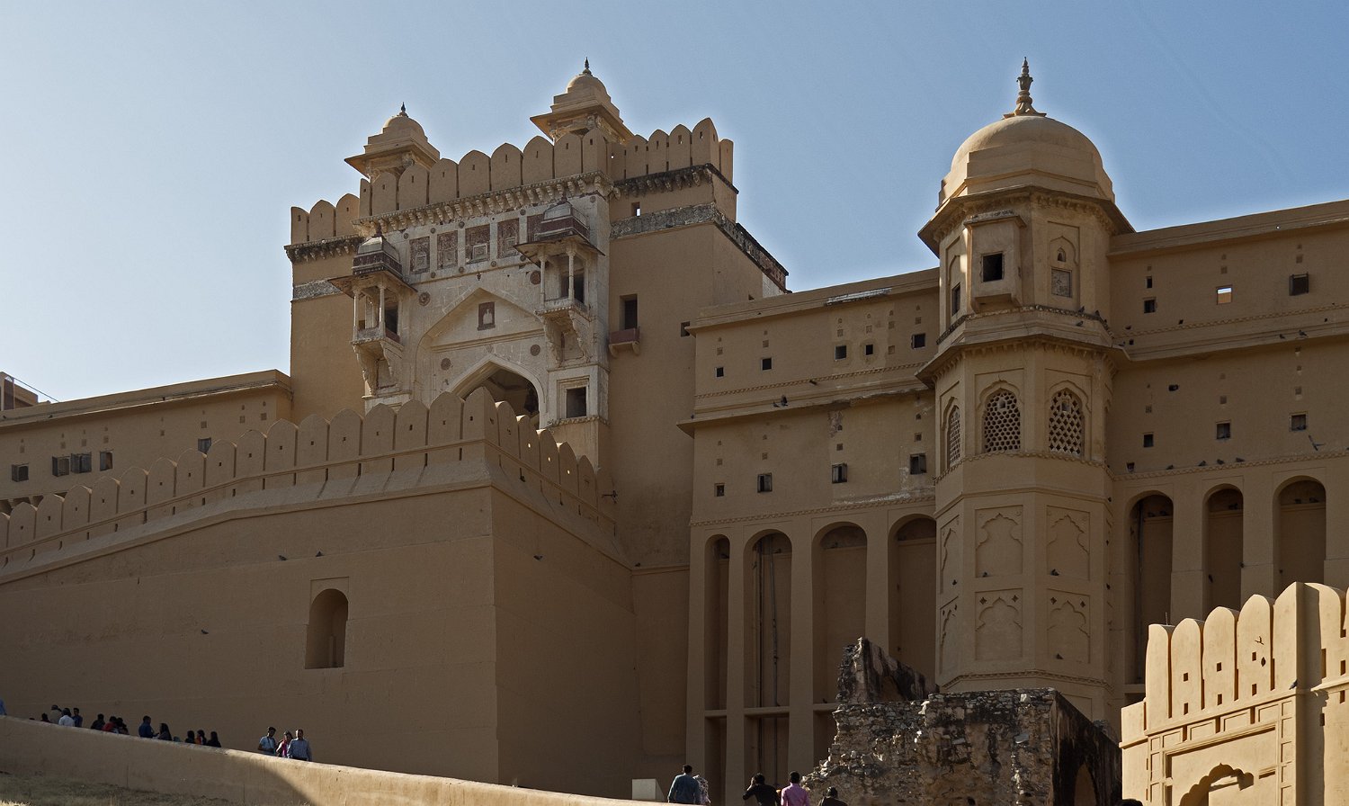 Le fort d'Amber est construit en gré rouge au XVIème siècle. Il s'étale sur quatres niveaux. L'accès se fait par la porte du soleil (Suraj Pole), à l'issue de la montée d'une longue rampe d'accès depuis la vallée. Le niveau le plus élevé était réservé aux femmes