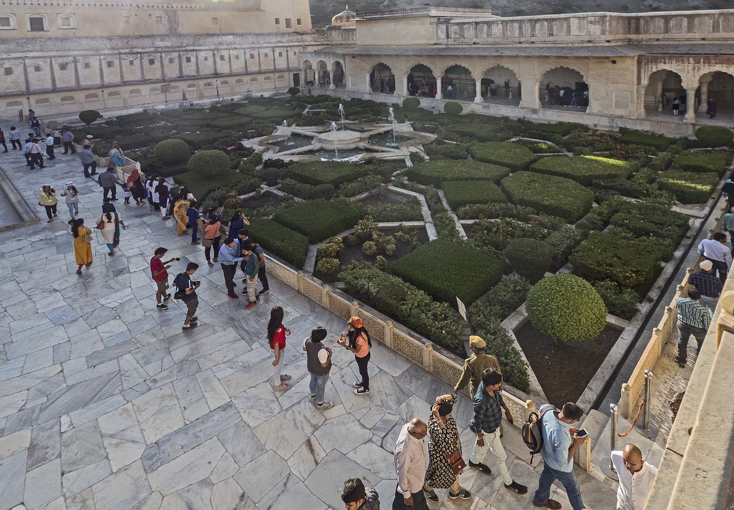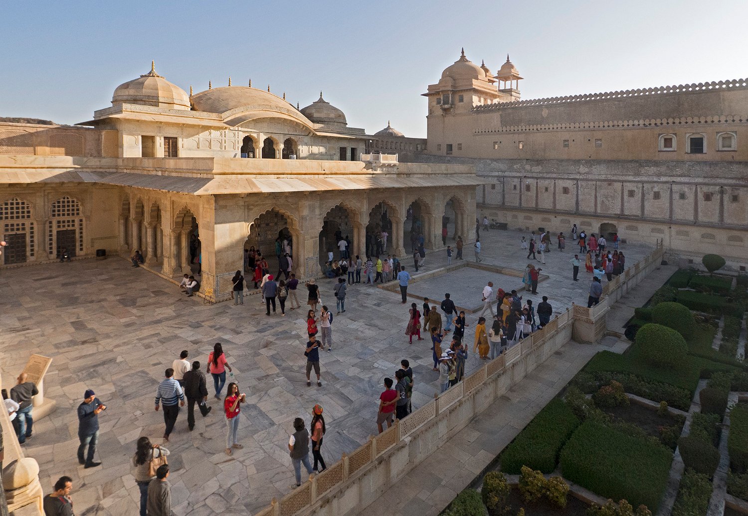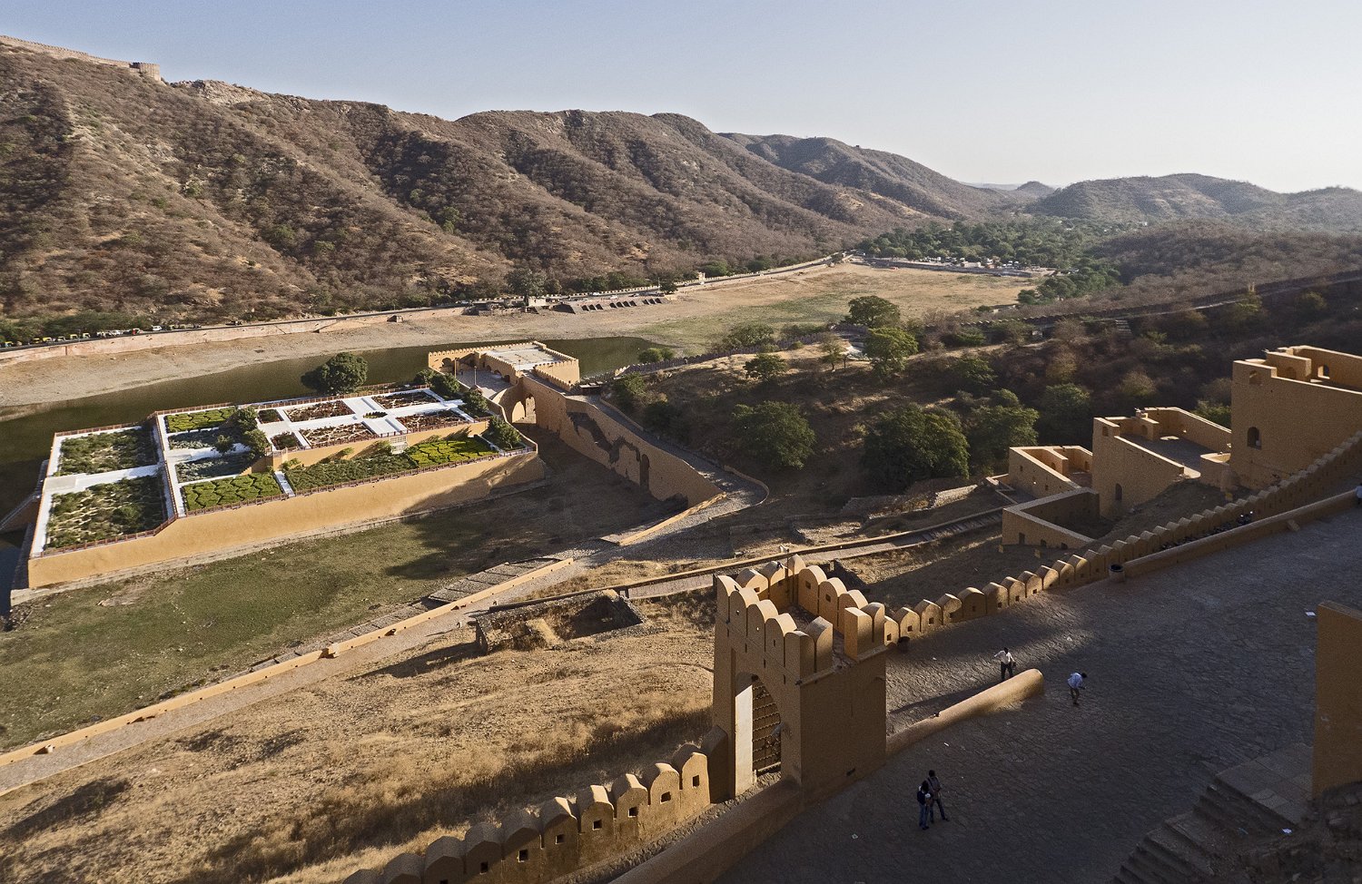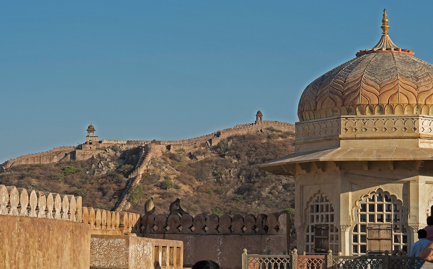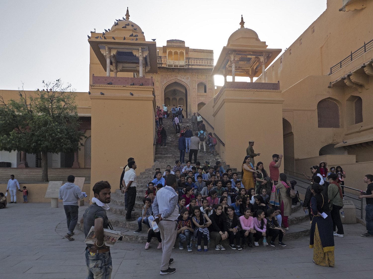 Le fort d'Amber est construit en gré rouge au XVIème siècle. Il s'étale sur quatres niveaux. L'accès se fait par la porte du soleil (Suraj Pole), à l'issue de la montée d'une longue rampe d'accès depuis la vallée. Le niveau le plus élevé était réservé aux femmes