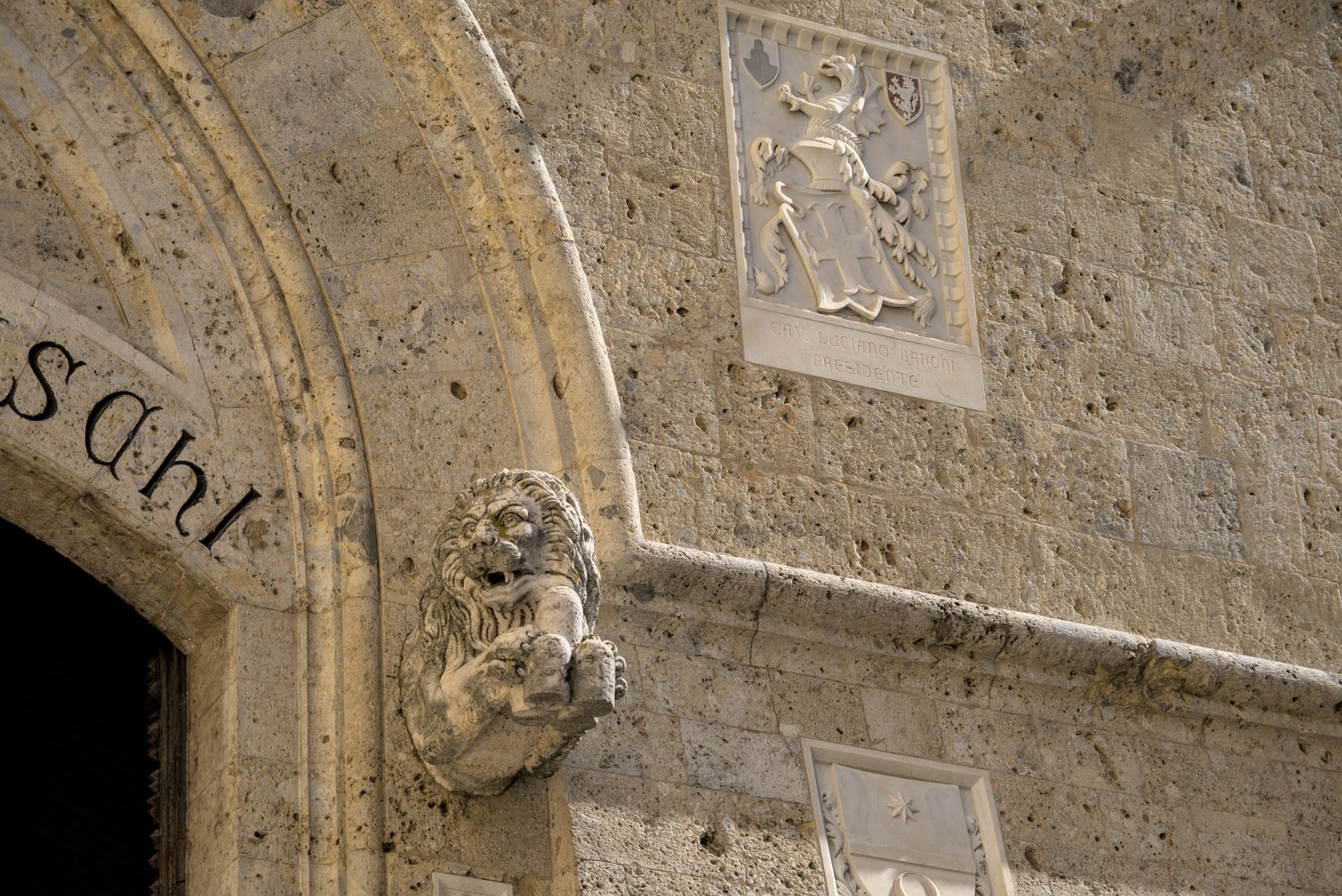 Porte d'une banque et colonne de la louve de Sienne
