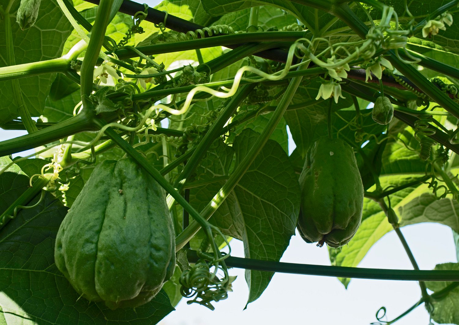 La chayotte est une plante grimpante, dotée de vrilles