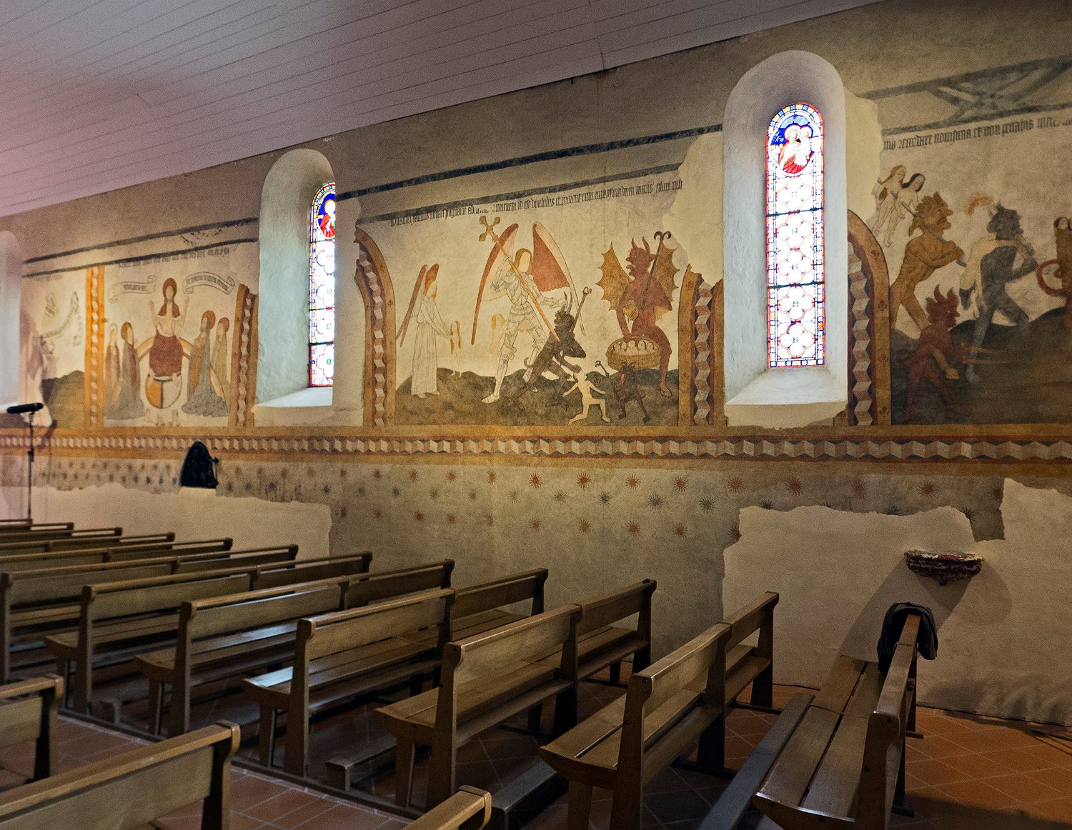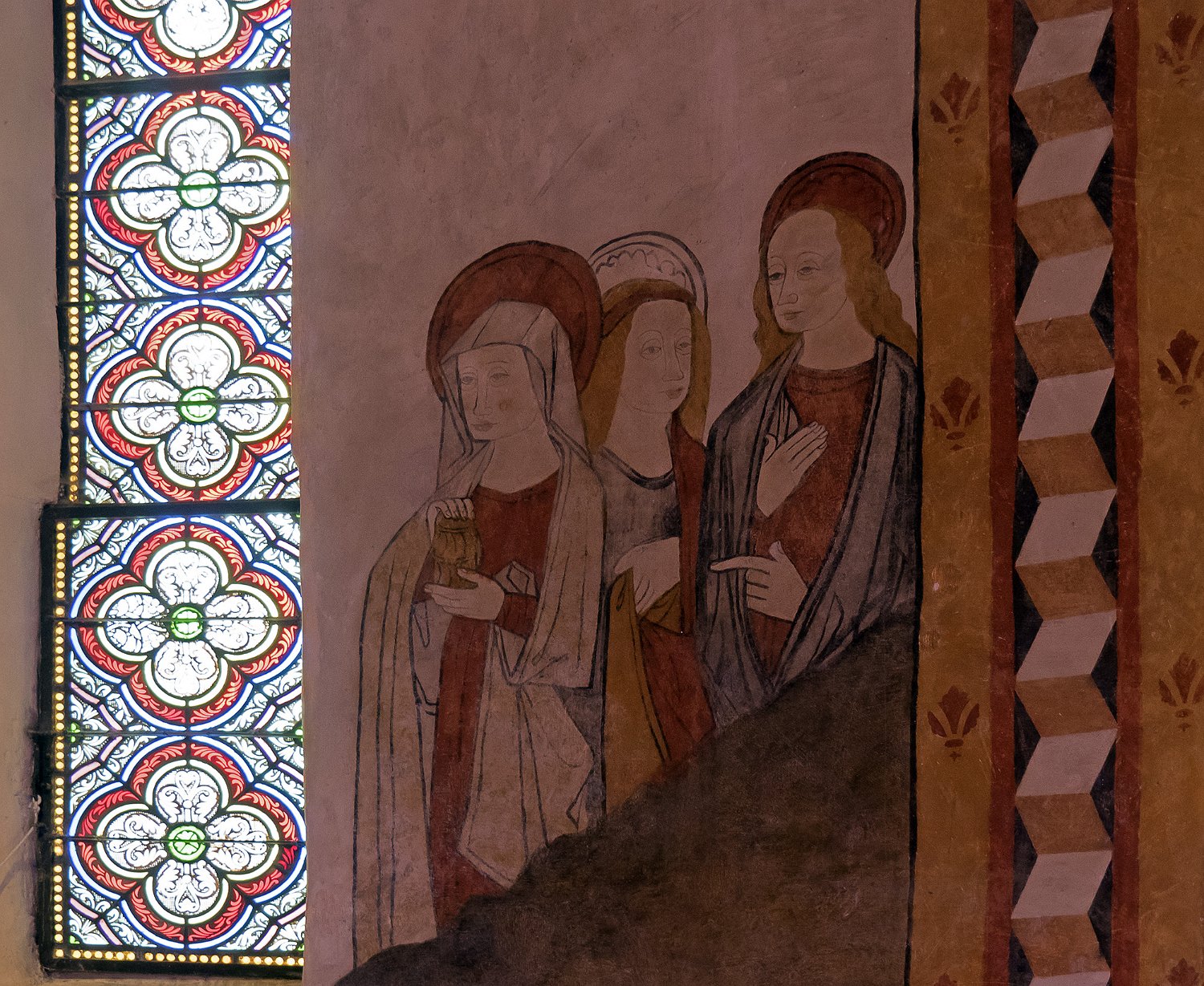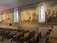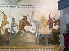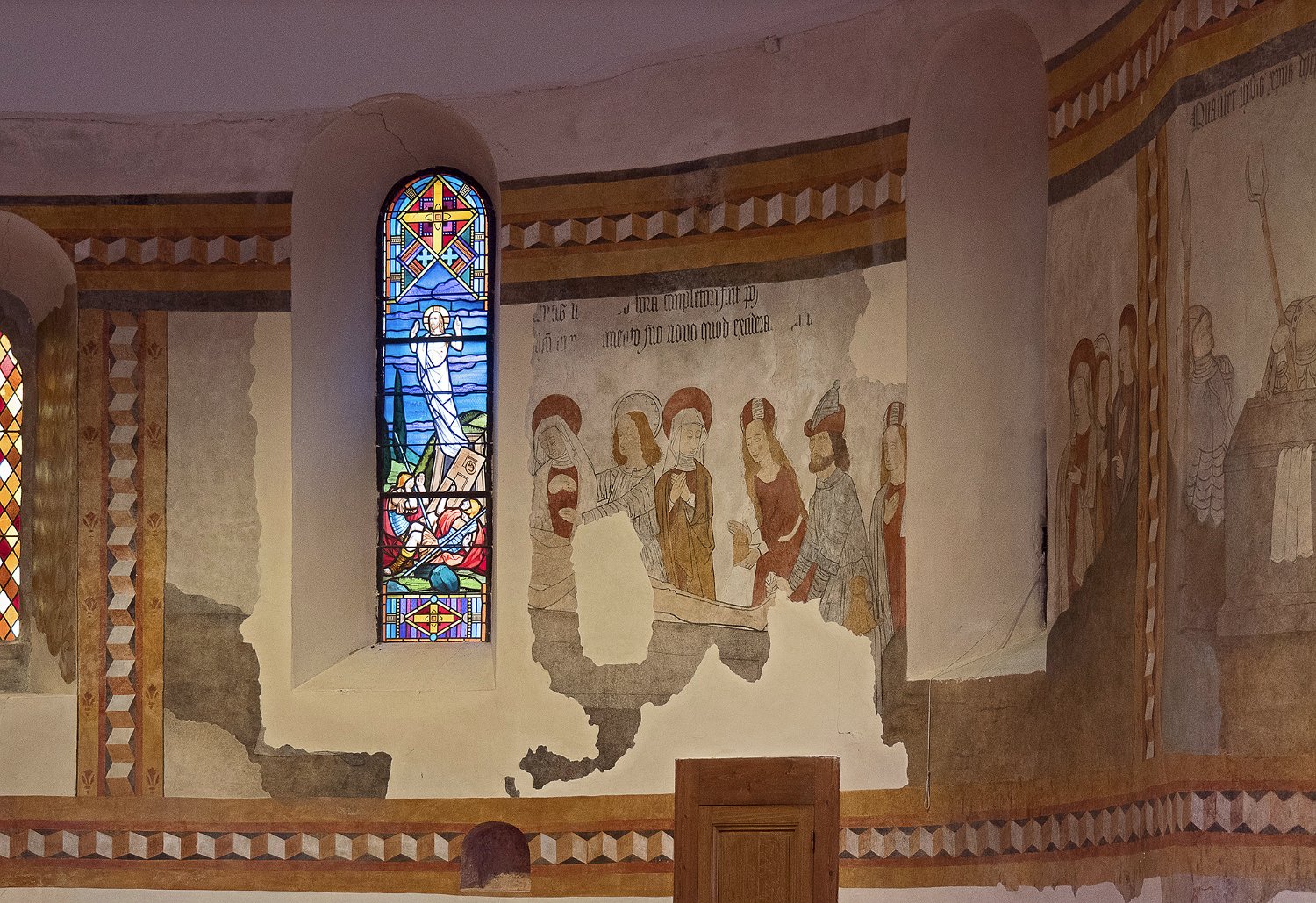 L'église d'Allemans sur Dropt est remarquables pour ses fresques, qui représentent des scènes bibliques. Certaines fresques ont été dégradées par le percement de nouvelles fenêtres et entièrement supprimées pour deux d'entre elles par l'ouverture des arcades sur le côté gauche. Ces fresques ont été peintes par des artistes anonymes qui offraient leurs services au clergé.