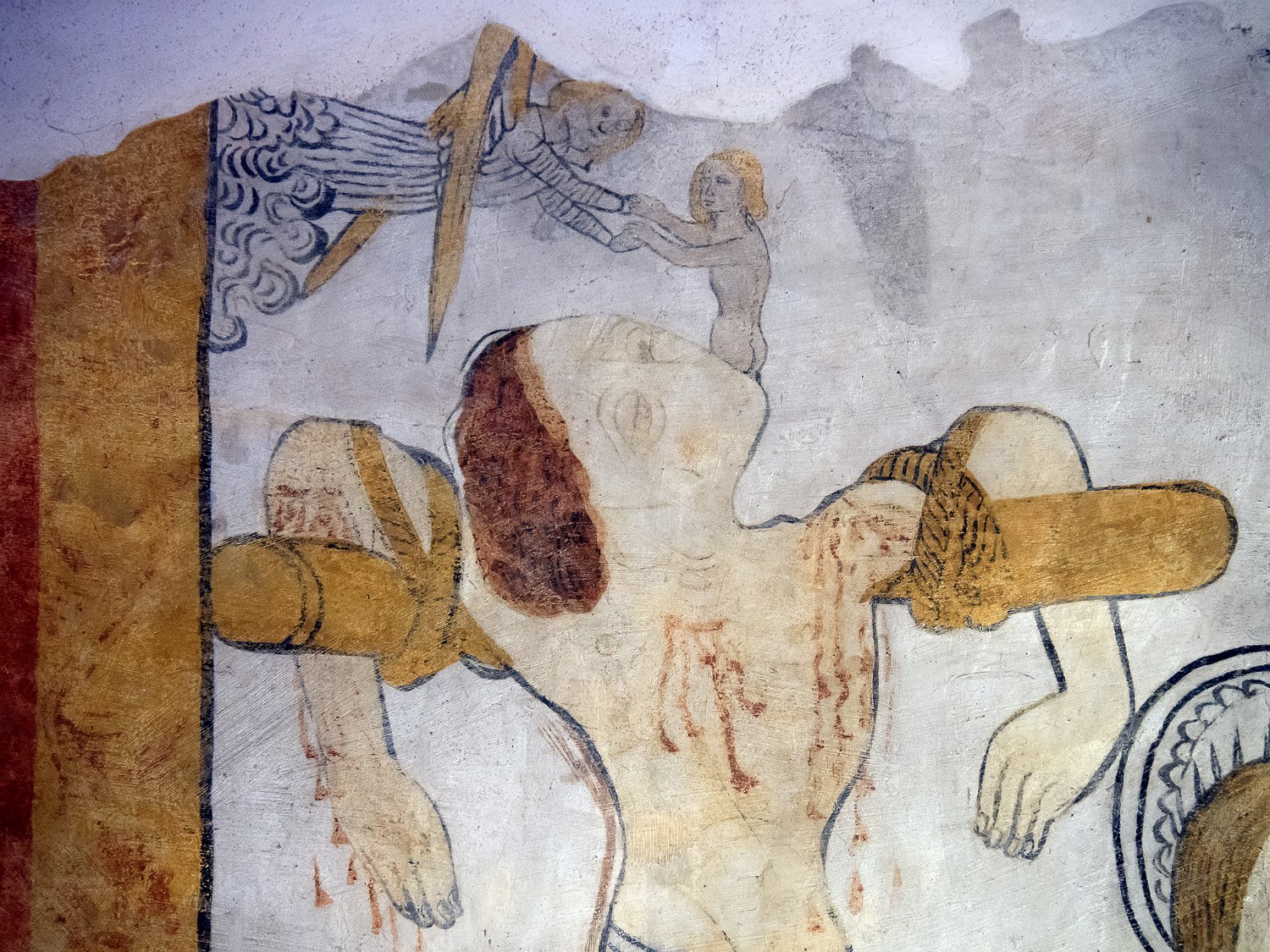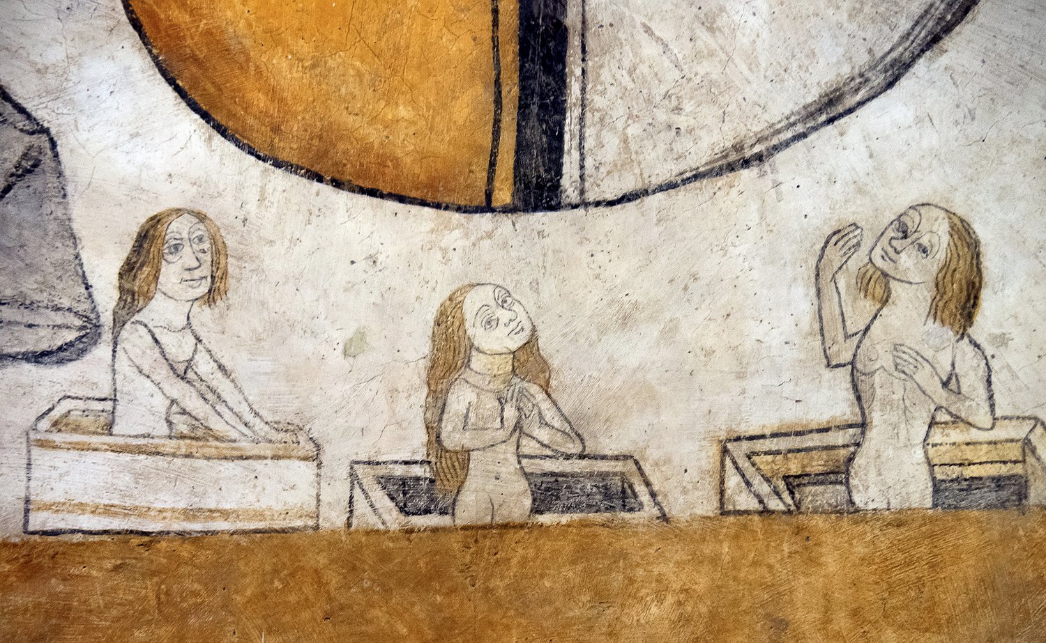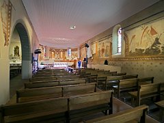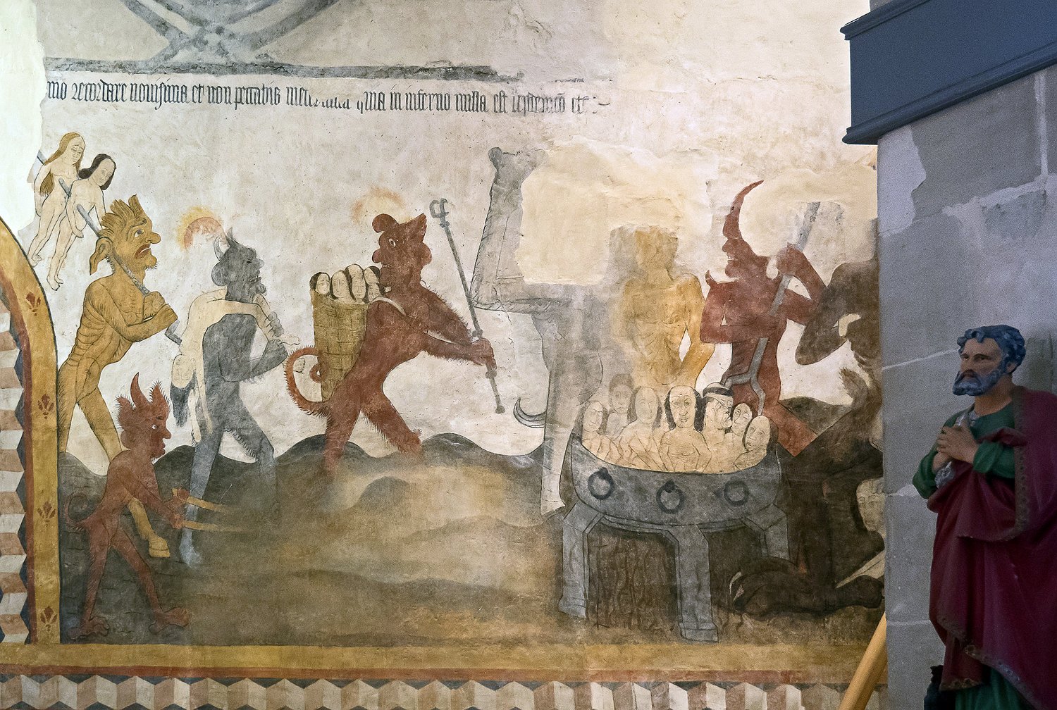 L'église d'Allemans sur Dropt est remarquables pour ses fresques, qui représentent des scènes bibliques. Certaines fresques ont été dégradées par le percement de nouvelles fenêtres et entièrement supprimées pour deux d'entre elles par l'ouverture des arcades sur le côté gauche. Ces fresques ont été peintes par des artistes anonymes qui offraient leurs services au clergé.